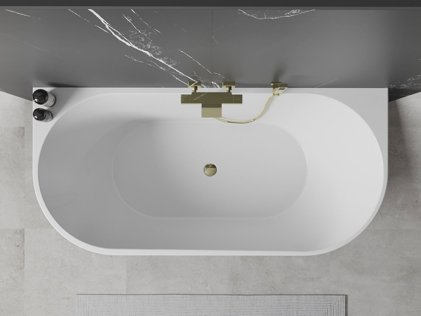 Mexen Oval volně stojící vana na stěně 180 x 80 cm, bílá, zlatý přepad - 52671808000-50