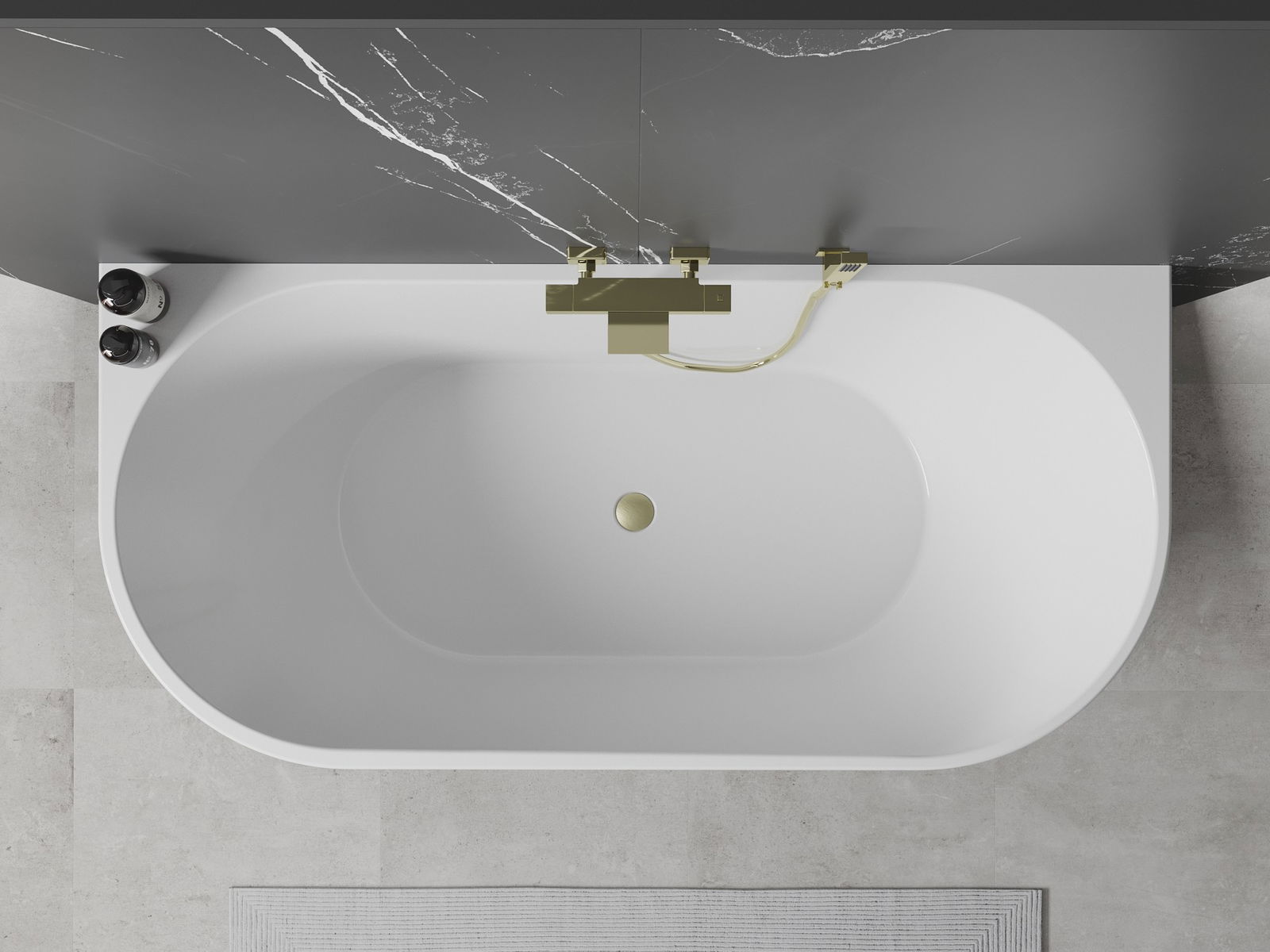 Mexen Oval volně stojící vana k přisazení ke stěně 180 x 80 cm, bílá/černá, přepad zlatý kartáčovaný