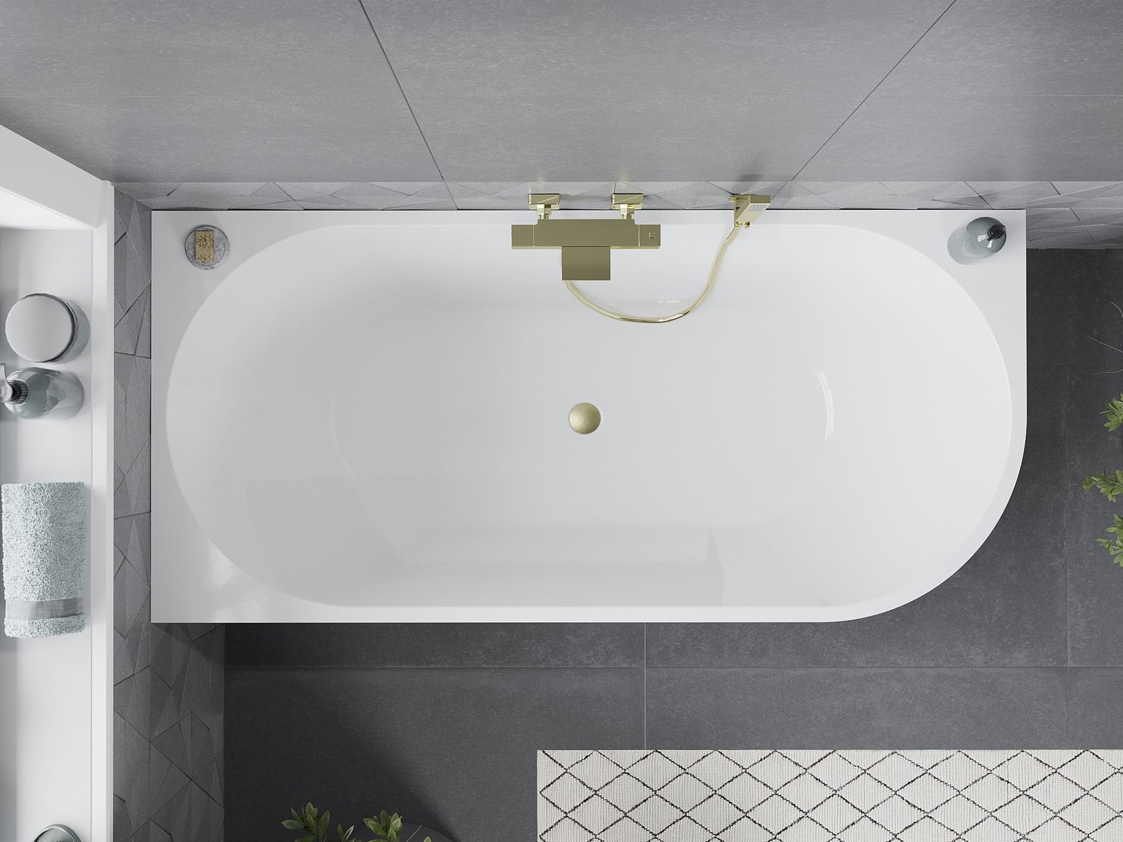 Mexen Mia samostatně stojící rohová vana levá 160 x 75 cm, bílá/černá, přepad zlatý kartáčovaný - 52691607575L-55