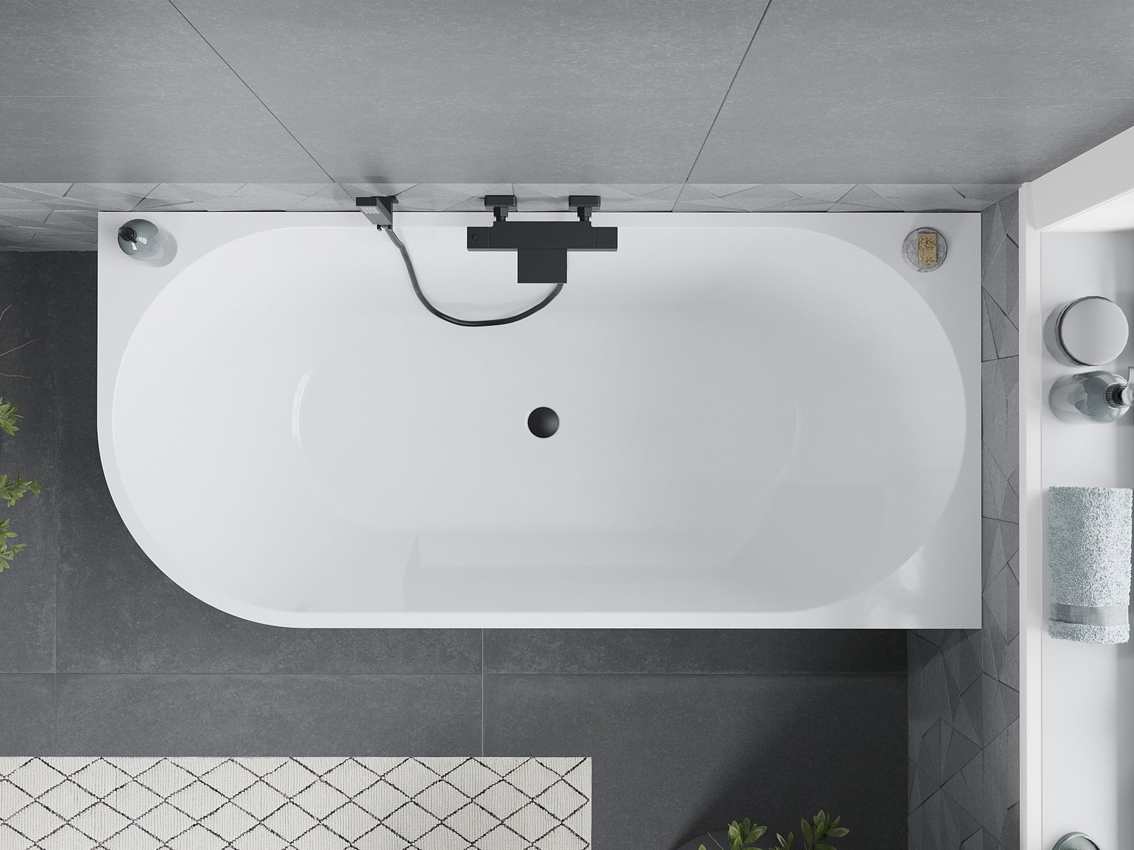 Mexen Mia volně stojící rohová vana pravá 160 x 75 cm, bílá, přepad černý - 52691607500P-70