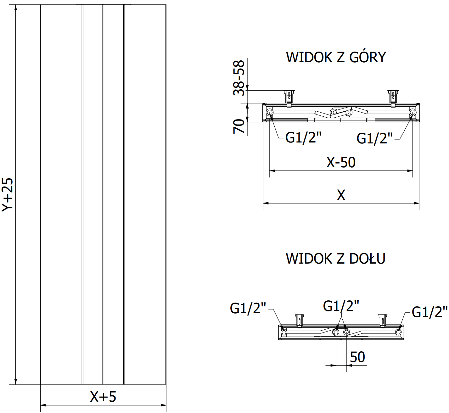 Mexen Line VS20SL radiátor plechový 1600 x 500 mm, dolní střední připojení, 993 W, černý - W6VS20SL-160-050-70