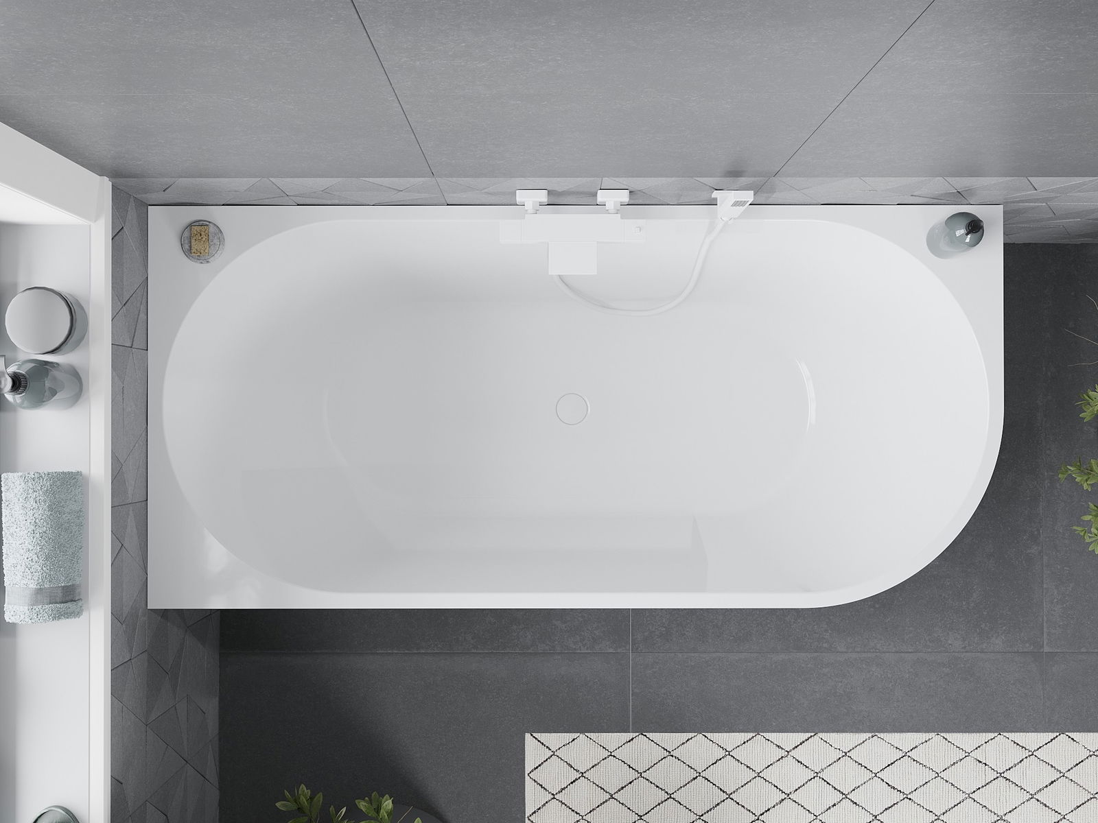 Mexen Mia samostatně stojící rohová vana levá 170 x 80 cm, bílá/černá, bílý přepad - 52691708075L-20