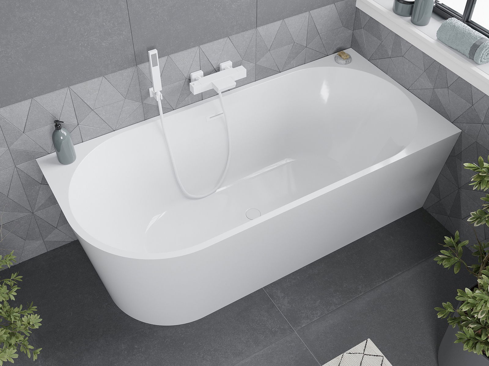 Mexen Mia volně stojící rohová vana pravá 170 x 80 cm, bílá, bílý přepad - 52691708000P-20