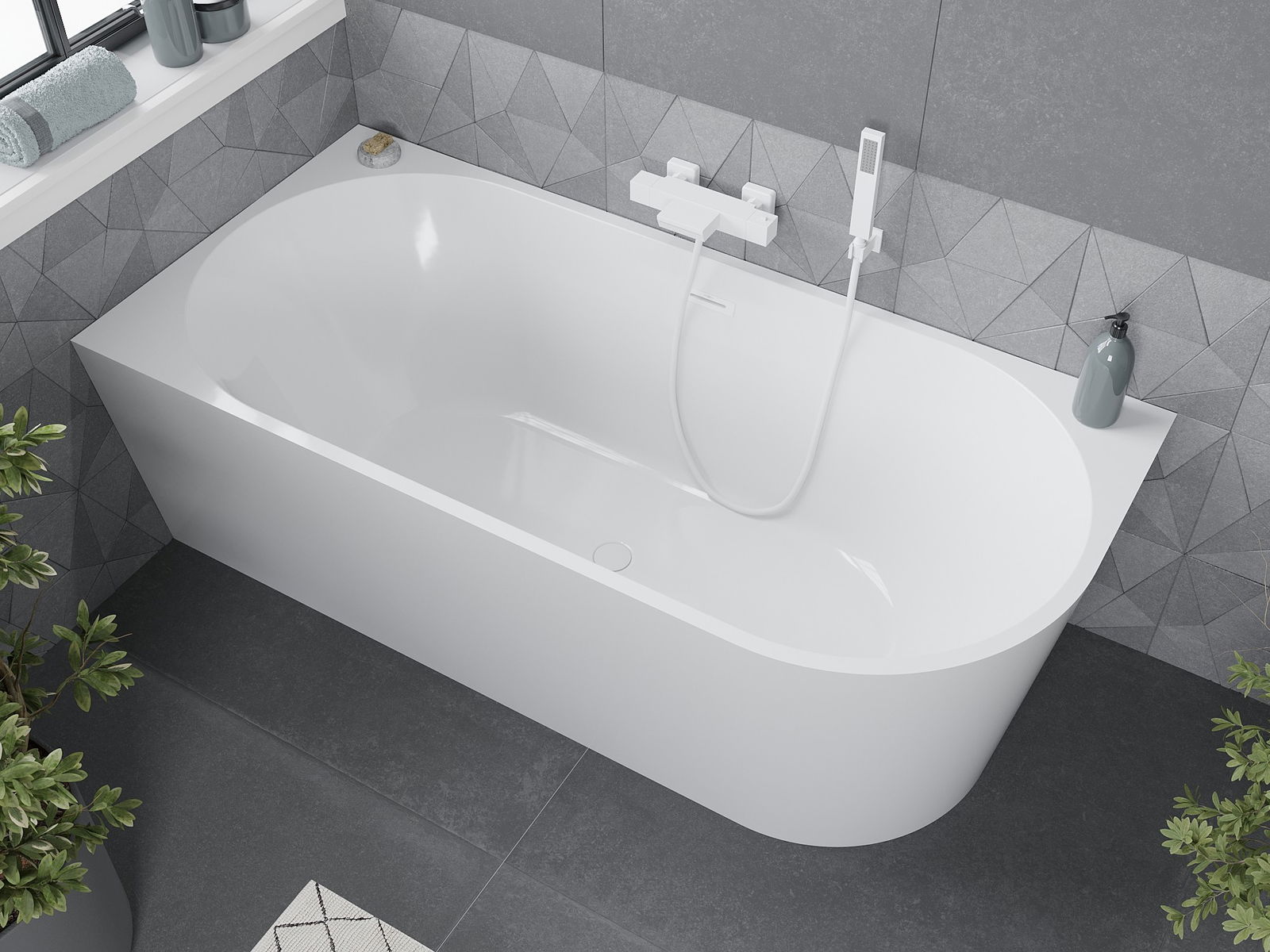 Mexen Mia volně stojící rohová vana levá 180 x 80 cm, bílá, bílý přepad - 52691808000L-20