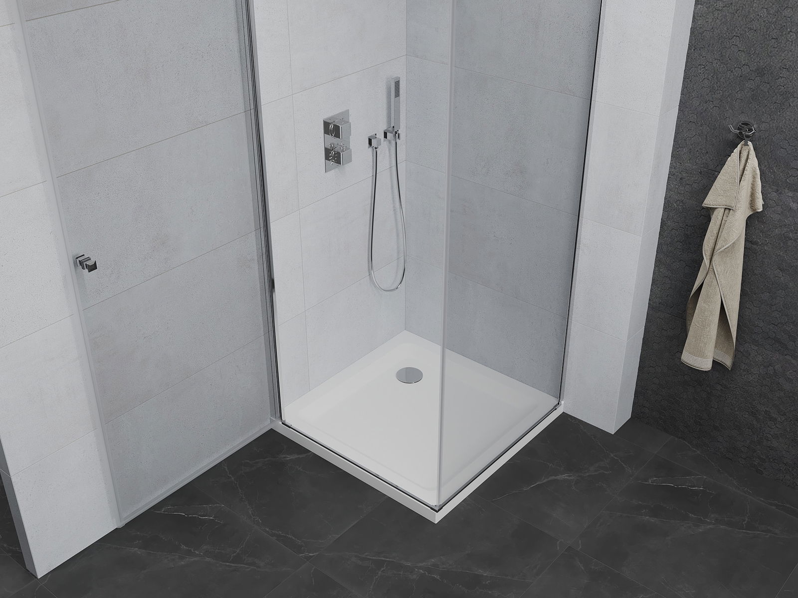 Mexen Pretoria sprchový kout otočný 70 x 70 cm, transparentní, chrom + sprchová vanička Flat - 852-070-070-01-00-4010