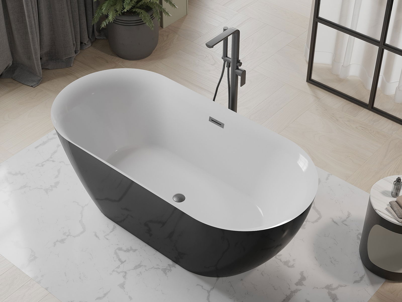 Mexen Roxy volně stojící vana 170 x 80 cm, bílá/černá, přepad gun gray kartáčovaný - 51201708075-66