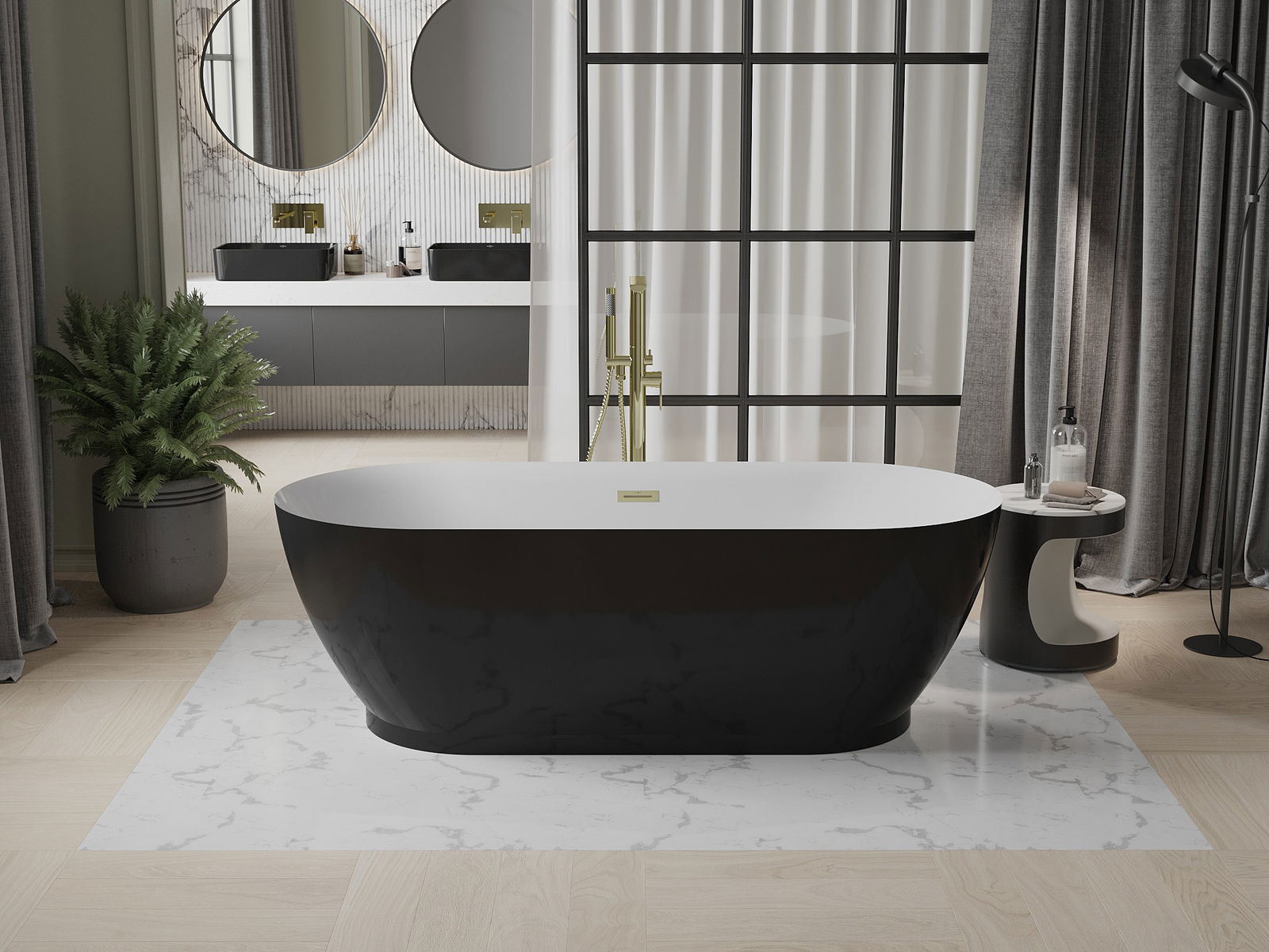Mexen Roxy volně stojící vana 180 x 85 cm, bílá/černá, přepad zlatý kartáčovaný - 51201808575-55