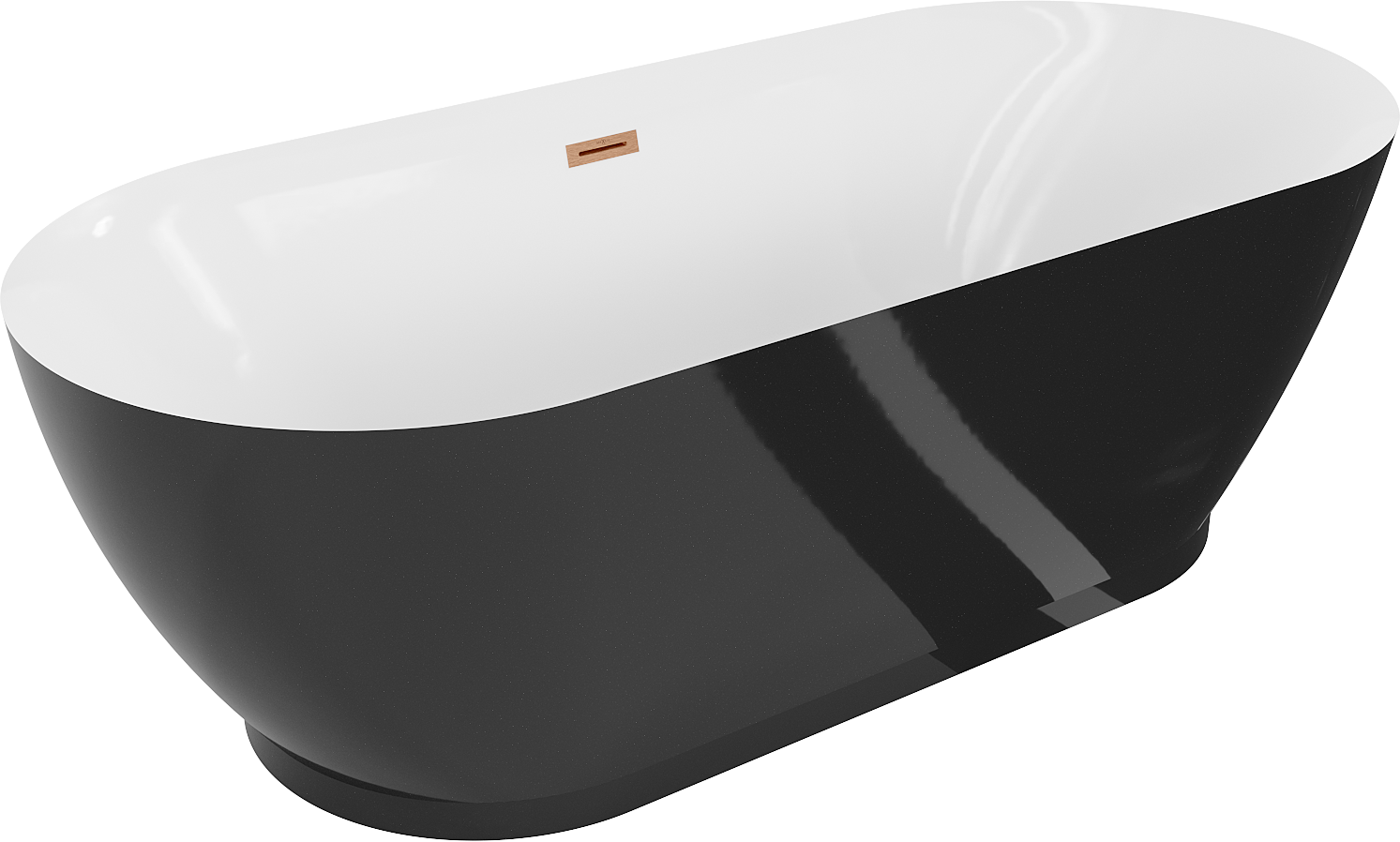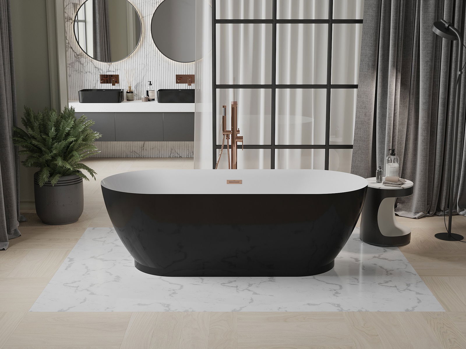 Mexen Roxy volně stojící vana 180 x 85 cm, bílá/černá, přepad kartáčovaná měď - 51201808575-65