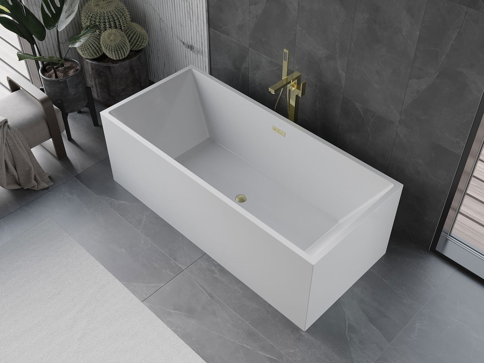 Mexen Vigo samostatně stojící vana 178,5 x 80 cm, bílá, přepad zlatý kartáčovaný - 51251788000-55