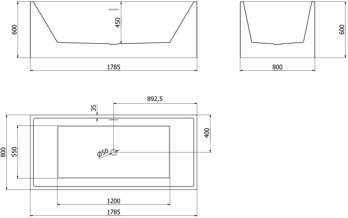 Mexen Vigo volně stojící vana 178,5 x 80 cm, bílá, přepad gun gray kartáčovaný - 51251788000-66