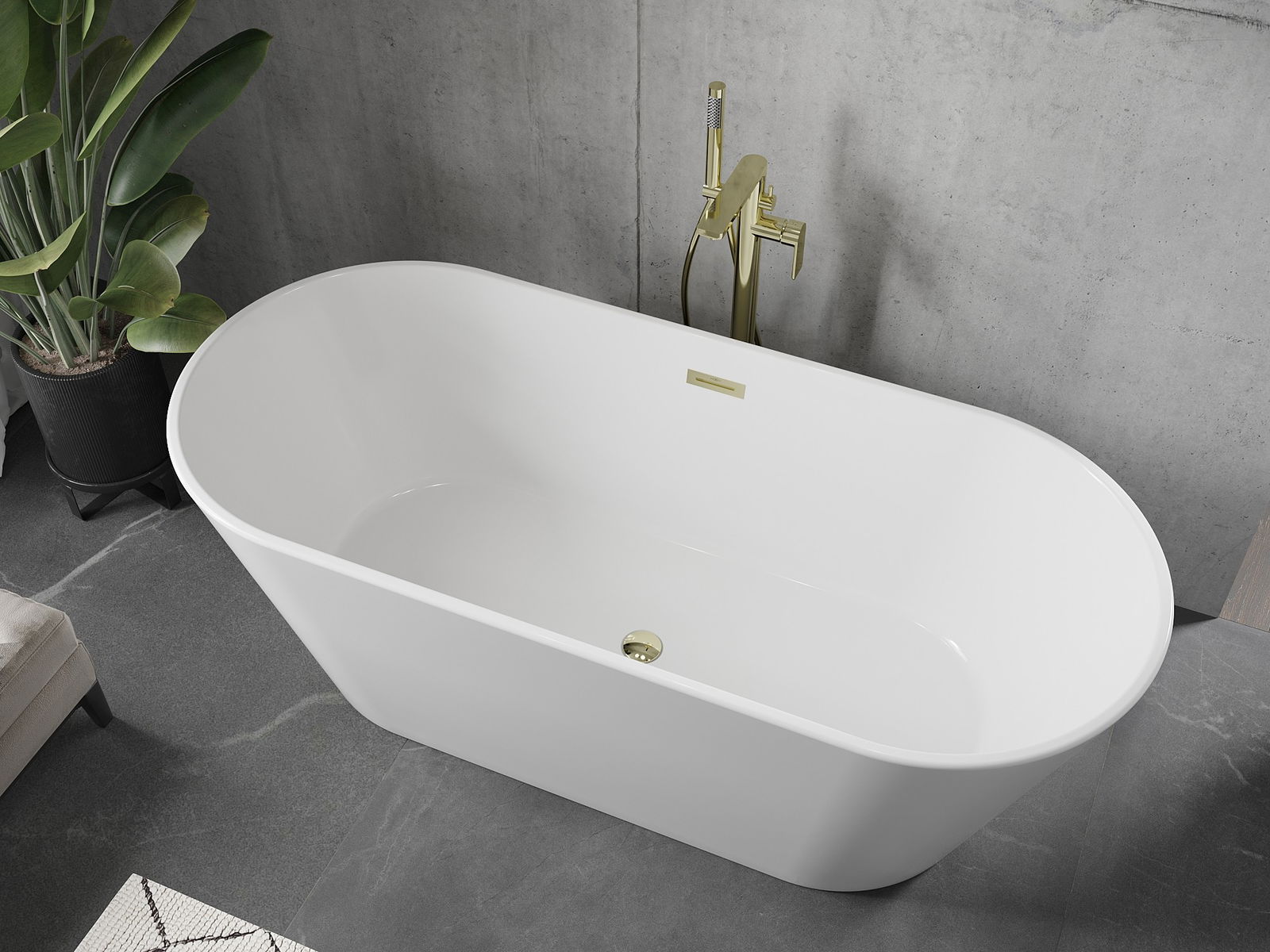 Mexen Flavia je volně stojící vana o rozměrech 150 x 75 cm, vyrobená z vysoce kvalitního sanitárního akrylu. Vyznačuje se elegantní bílou barvou a zlatou povrchovou úpravou, což jí dodává luxusní vzhled. Díky hloubce 46 cm a výšce 58 cm poskytuje pohodlí při používání. Vana je vybavena odtokem uprostřed a přepadovým otvorem, což zvyšuje její funkčnost. Navíc materiály použité při výrobě zajišťují odolnost proti matnění a UV záření.