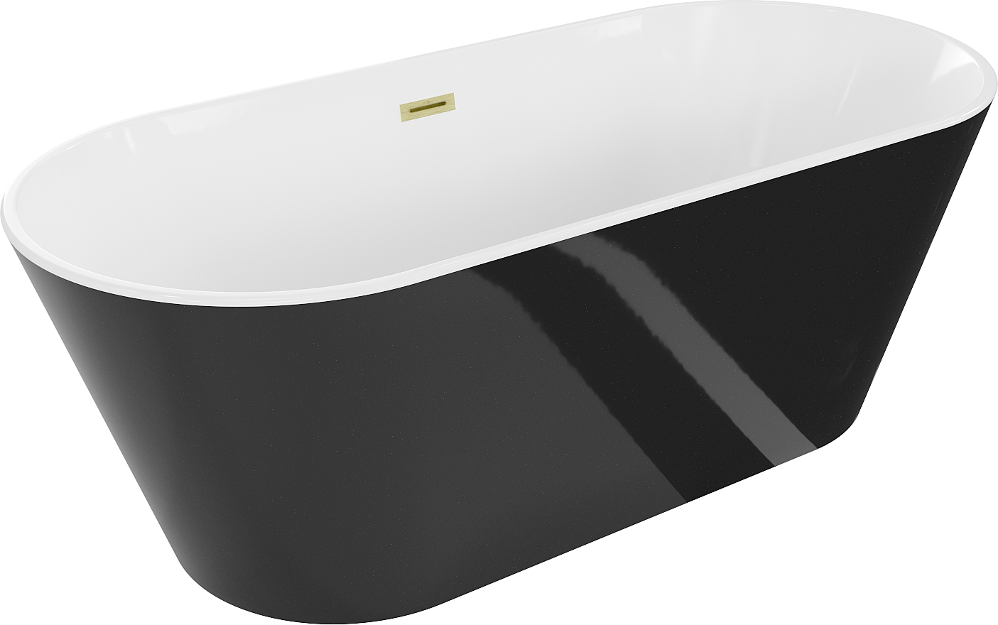 Mexen Flavia volně stojící vana 160 x 75 cm, bílá/černá, přeliv zlatý kartáčovaný - 54031608075-55
