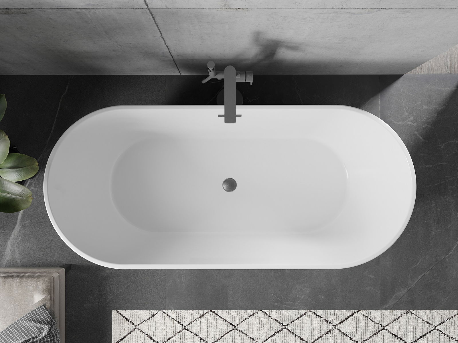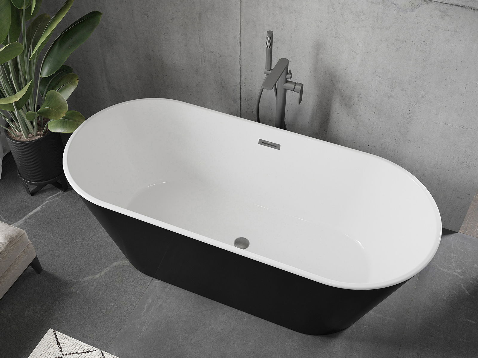 Mexen Flavia volně stojící vana 170 x 75 cm, bílá/černá, přepad gun gray kartáčovaný - 54031708075-66