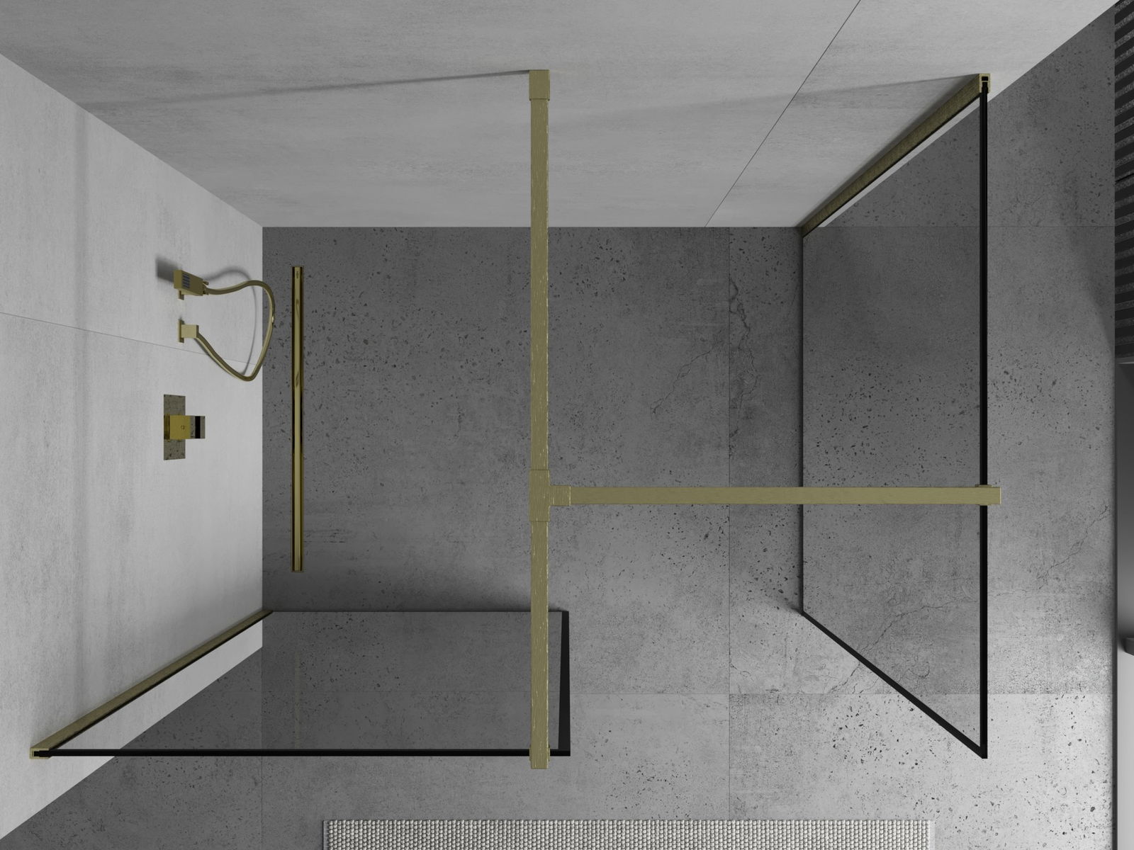 Mexen Kioto sprchová stěna Walk-in 160 x 120 cm, černý rám, zlatý kartáčovaný - 800-160-202-55-70-120