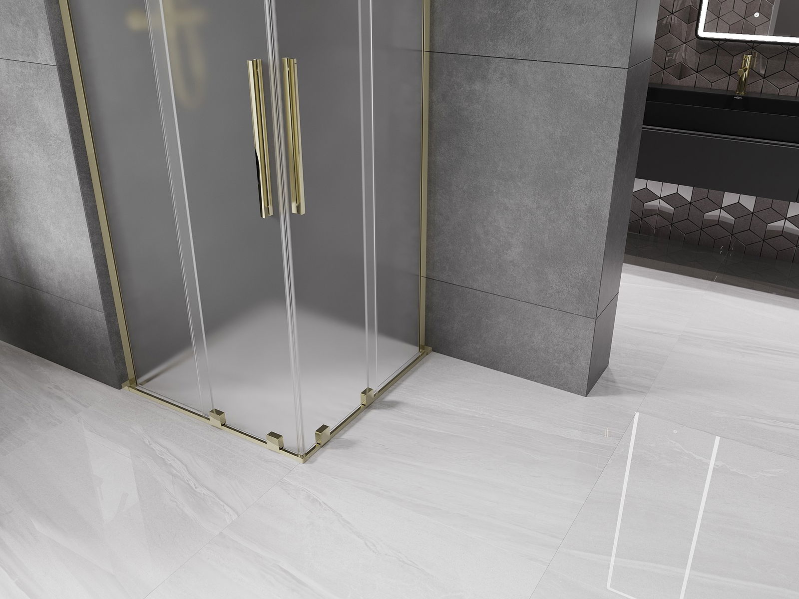 Mexen Velar L Duo posuvná sprchová kabina 90 x 90 cm, mrazivá, zlatá - 871-090-090-02-33-50