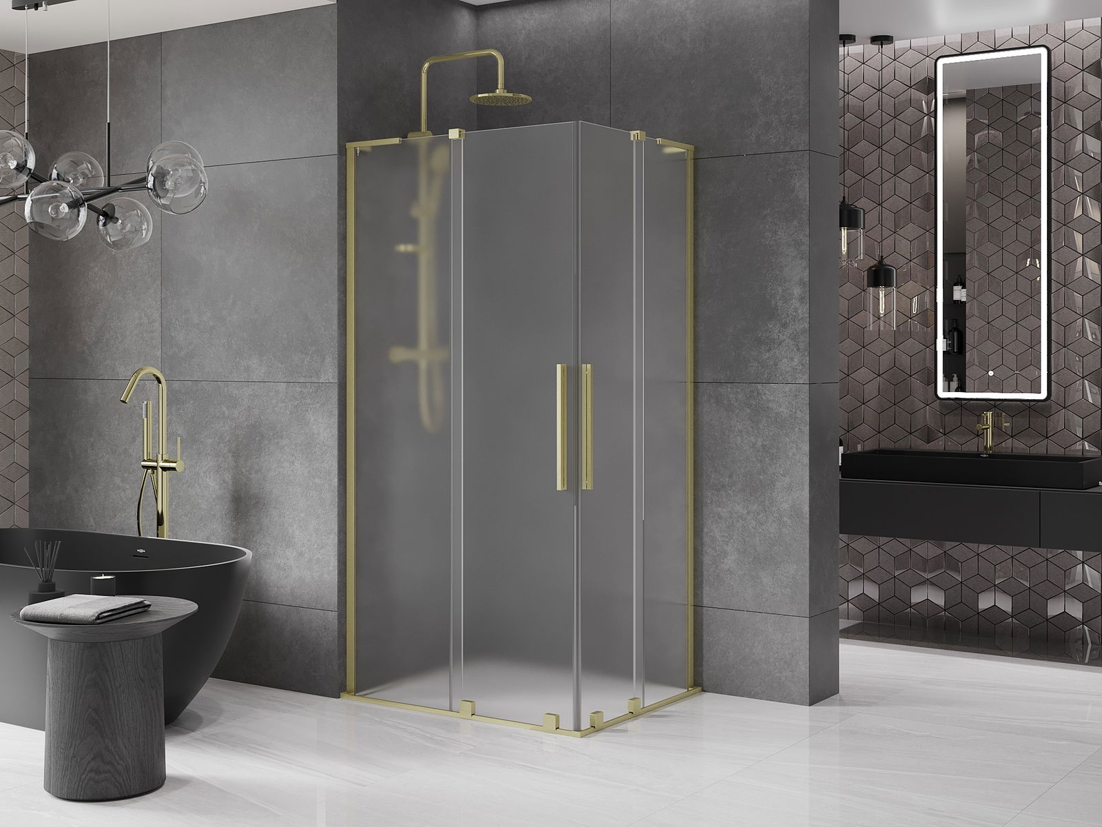 Mexen Velar L Duo posuvná sprchová kabina 100 x 90 cm, matná, kartáčované zlato - 871-100-090-02-33-55