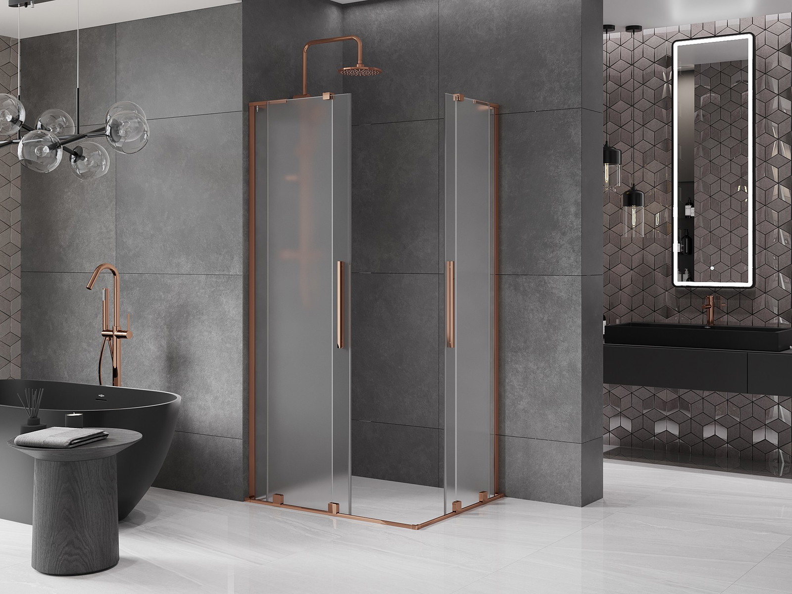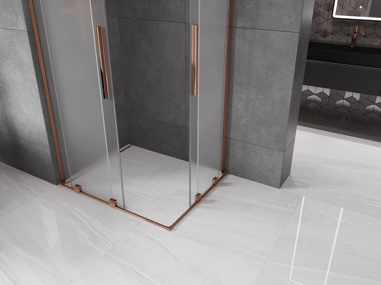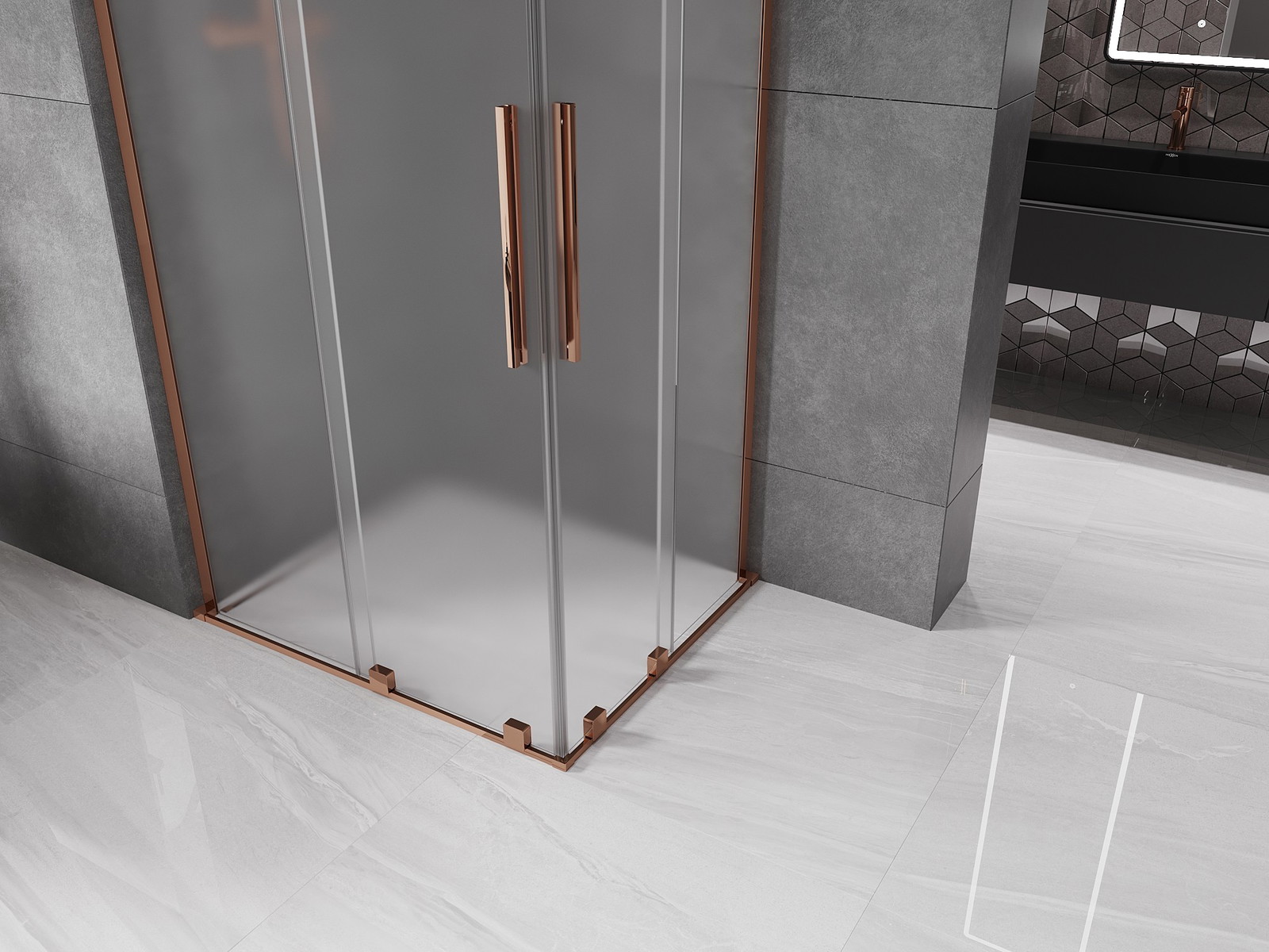 Mexen Velar L Duo posuvná sprchová kabina 90 x 80 cm, námraza, růžové zlato - 871-090-080-02-33-60