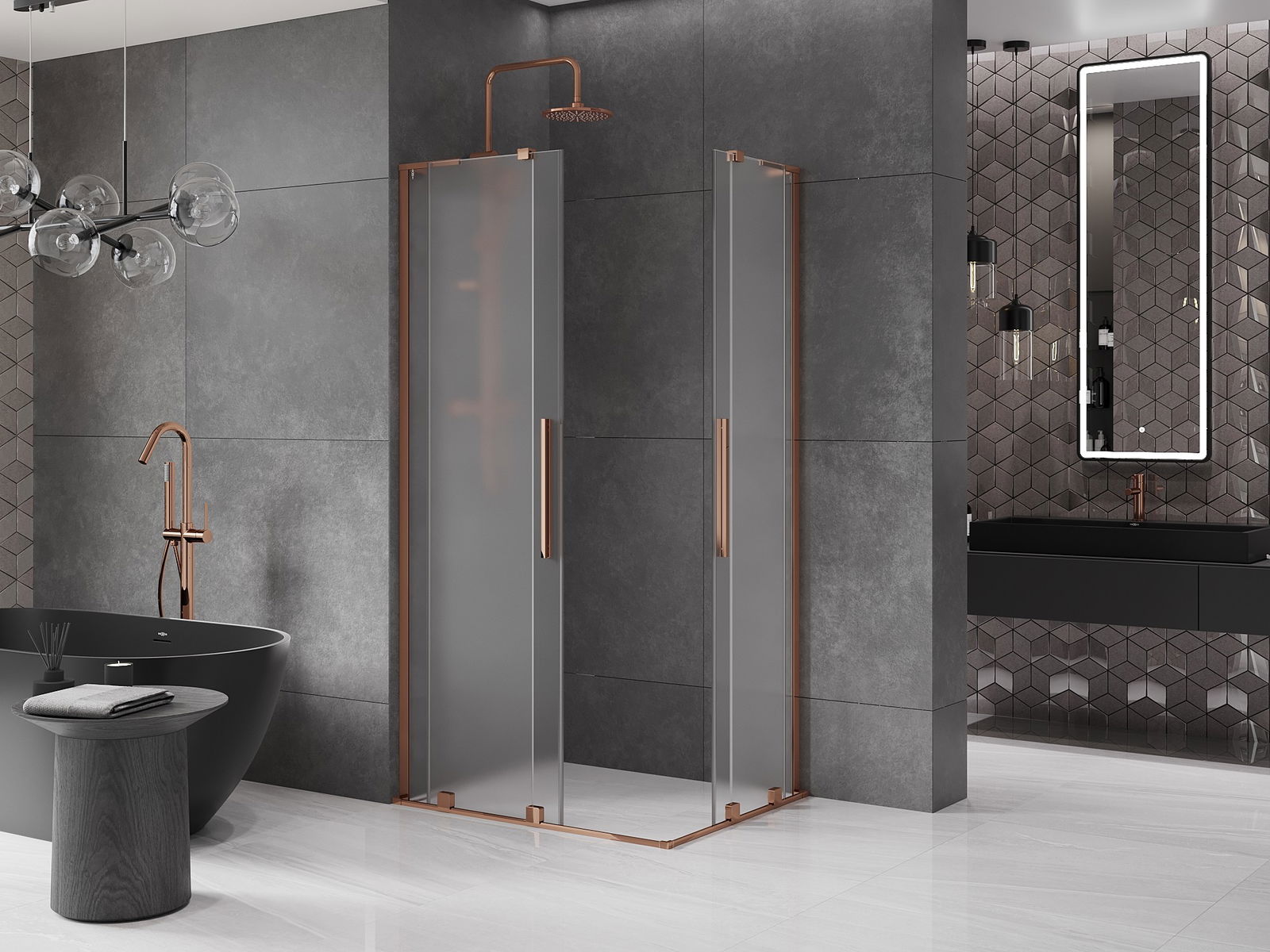 Mexen Velar L Duo sprchový kout posuvný 100 x 90 cm, matný, růžové zlato - 871-100-090-02-33-60