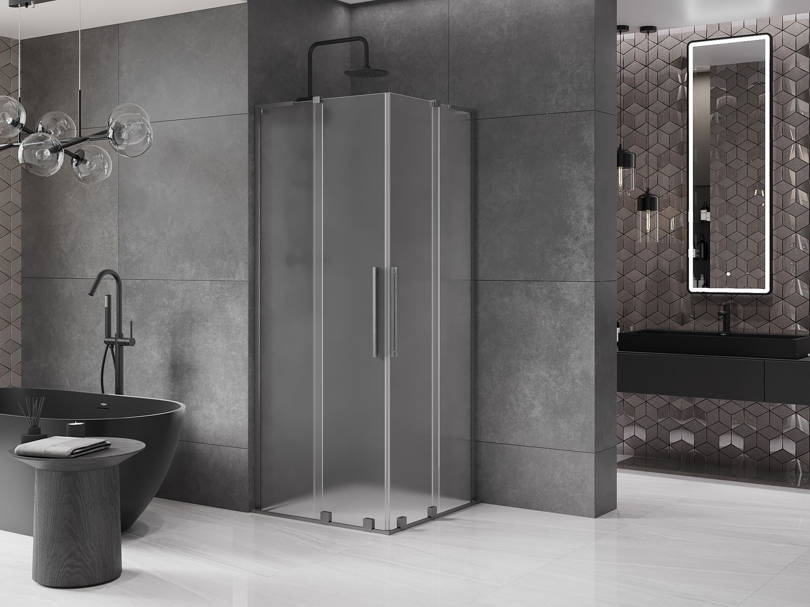 Mexen Velar L Duo sprchový kout posuvný 80 x 80 cm, matný, kartáčovaný gun šedý - 871-080-080-02-33-66