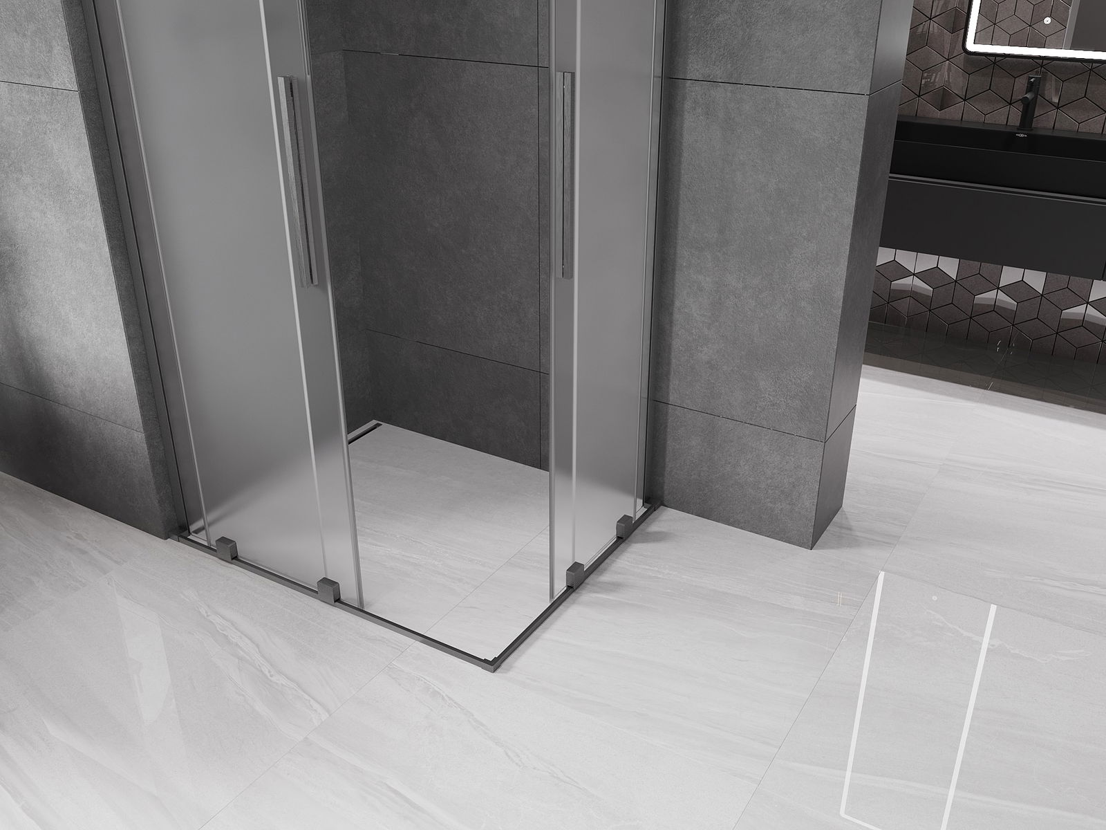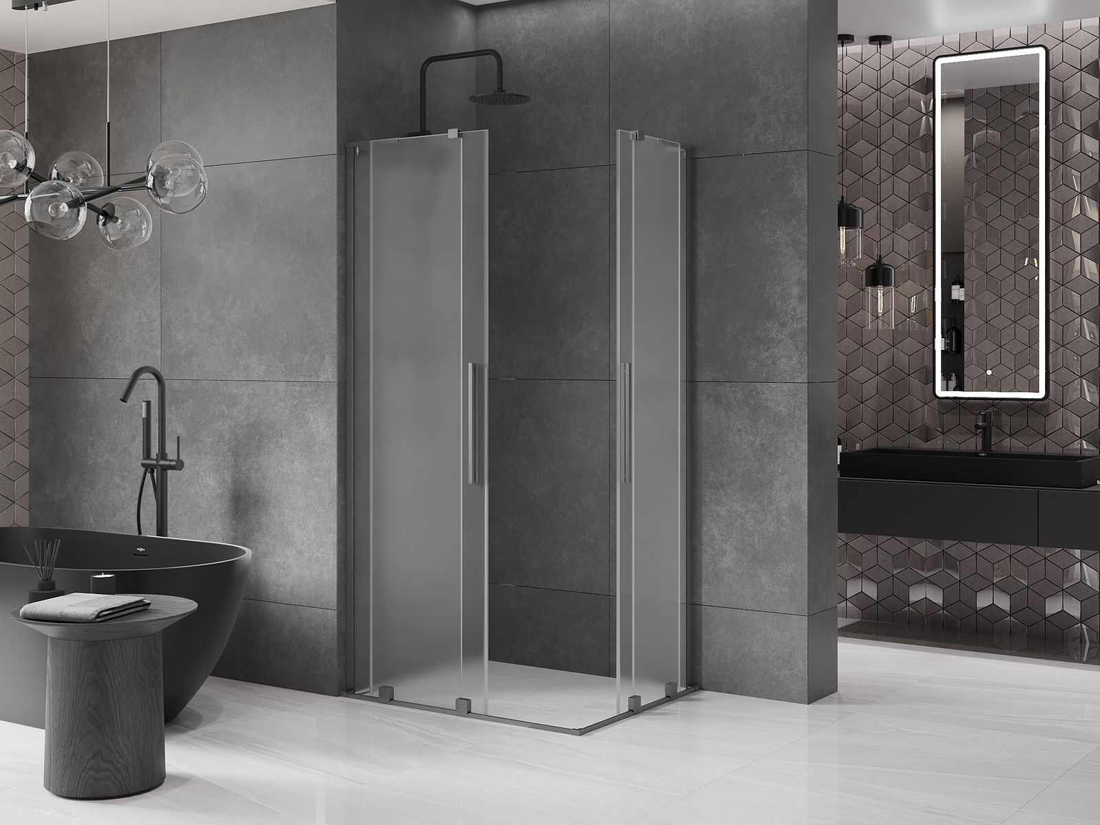 Mexen Velar L Duo posuvná sprchová kabina 90 x 80 cm, matná, gun gray kartáčovaný - 871-090-080-02-33-66