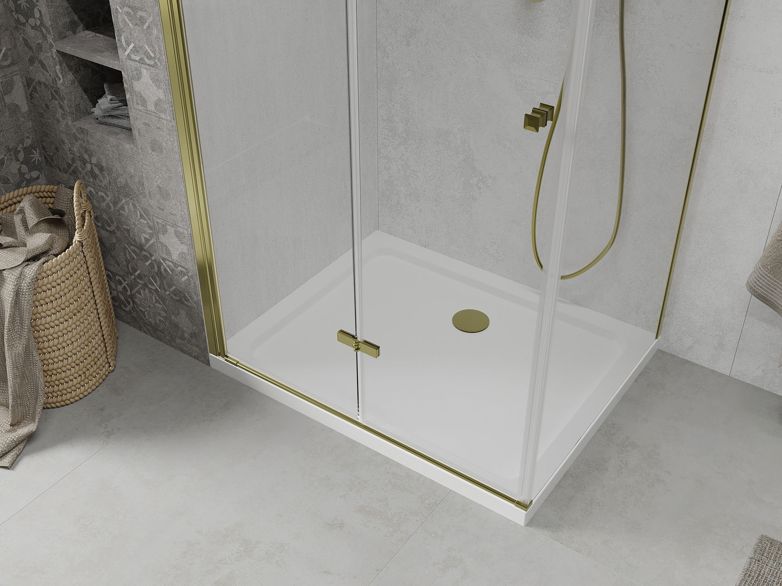 Možnost skládání dveří, jak dovnitř, tak ven, umožňuje získat více prostoru při nepoužívání sprchy. Je to ideální řešení pro menší koupelny, maximálně využívající dostupný prostor.