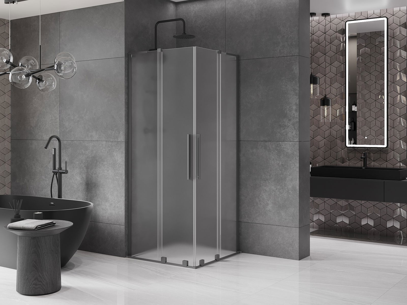 Mexen Velar L Duo sprchový kout posuvný 100 x 100 cm, mléčné sklo, gun metal - 871-100-100-02-33-95