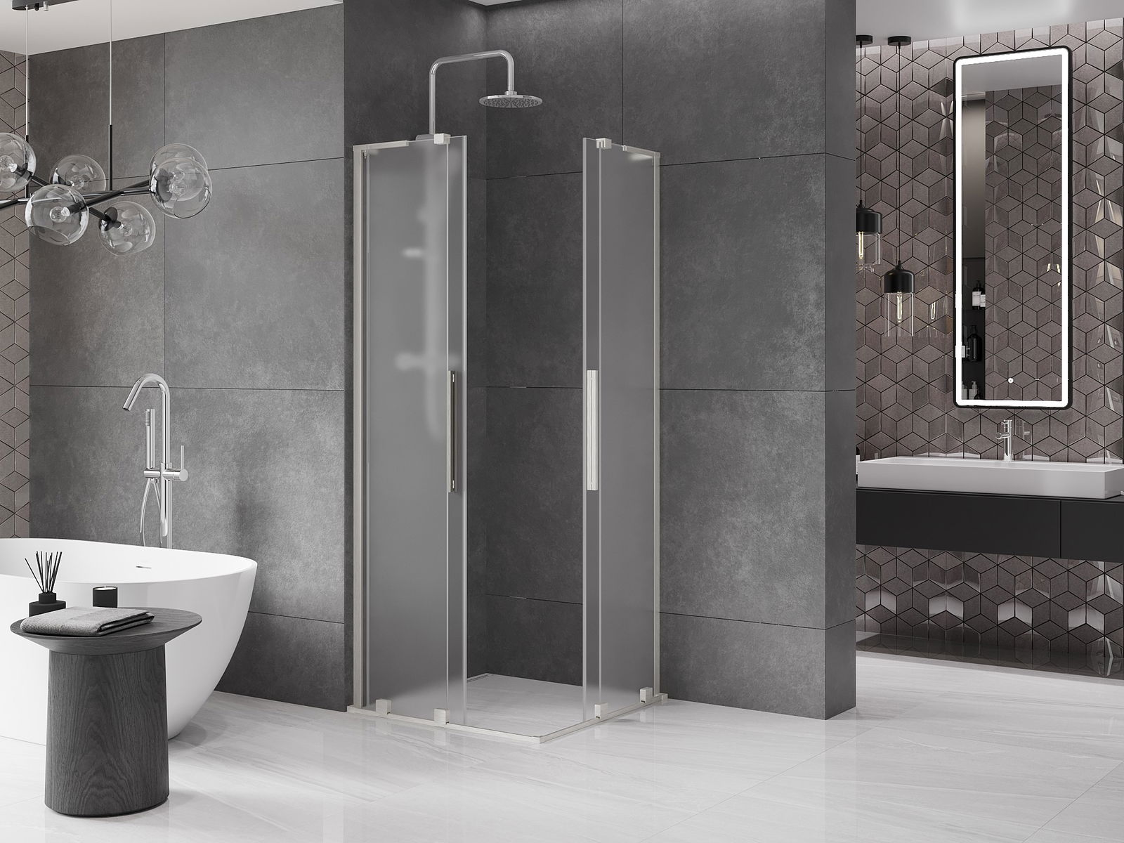 Mexen Velar L Duo sprchový kout posuvný 90 x 90 cm, matný, kartáčovaný nikl - 871-090-090-02-33-97