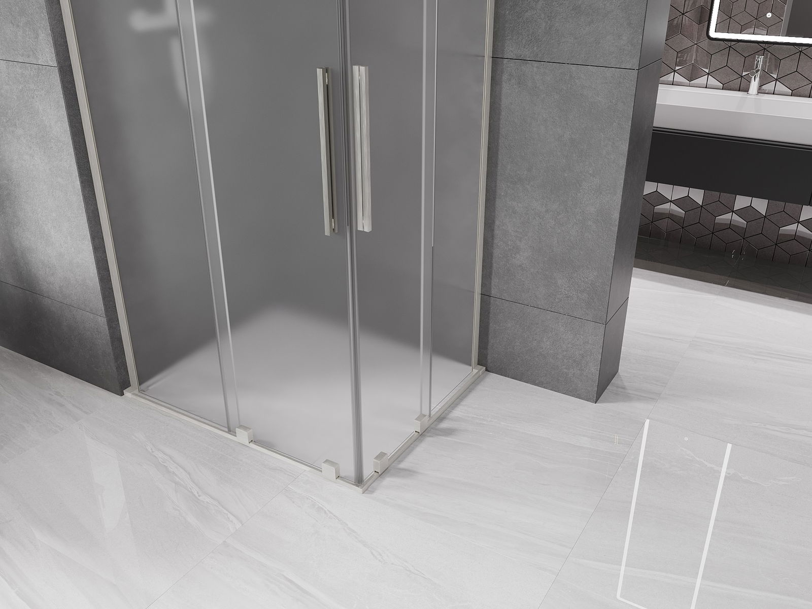Mexen Velar L Duo sprchový kout posuvný 100 x 90 cm, námraza, kartáčovaný nikl - 871-100-090-02-33-97