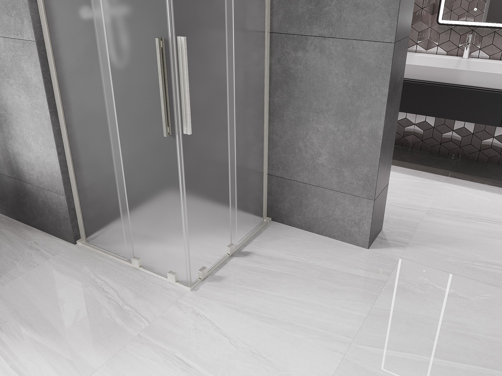 Mexen Velar L Duo sprchová kabina posuvná 100 x 100 cm, námraza, kartáčovaný nikl - 871-100-100-02-33-97
