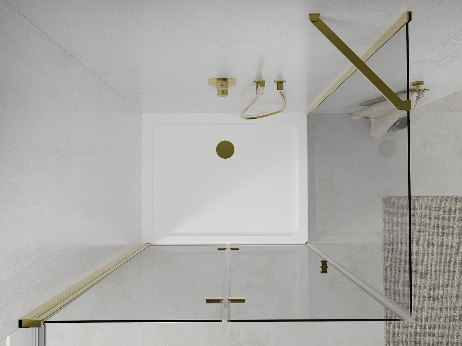 Mexen Lima skládací sprchový kout 100 x 70 cm, transparentní, zlatý + vanička Flat - 856-100-070-50-00-4010