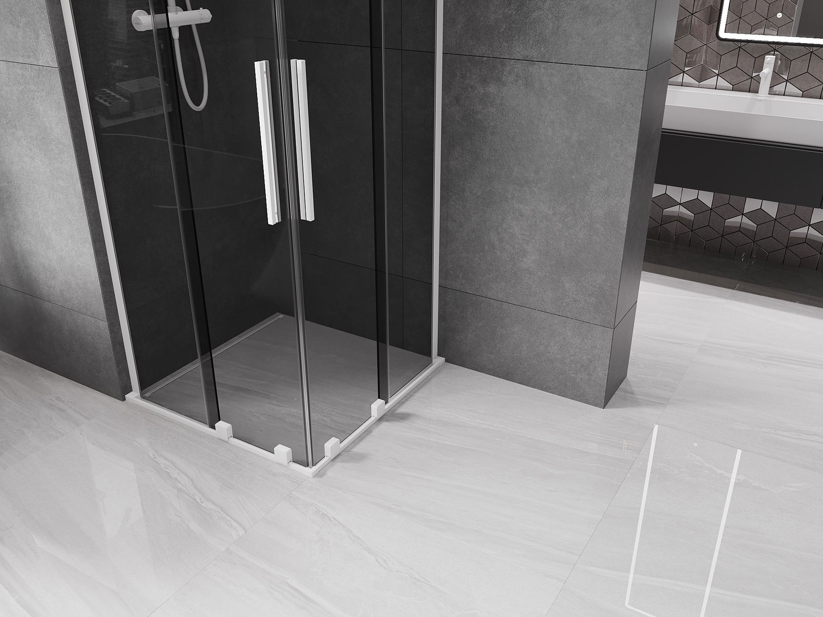 Mexen Velar L Duo sprchová kabina posuvná 90 x 90 cm, grafit, bílá - 871-090-090-02-43-20
