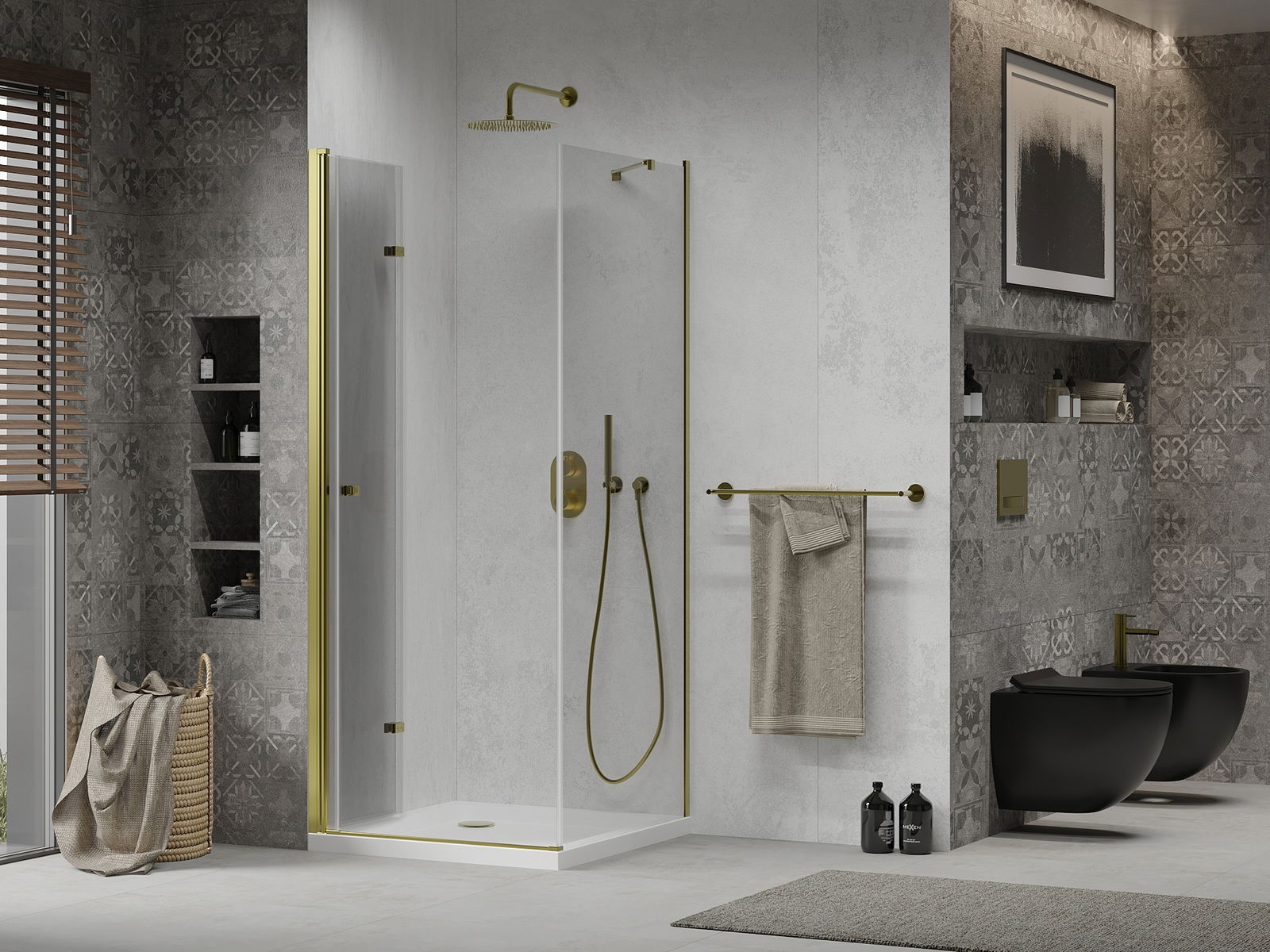 Mexen Lima skládací sprchový kout 100 x 100 cm, transparentní, zlatý + vanička Flat - 856-100-100-50-00-4010