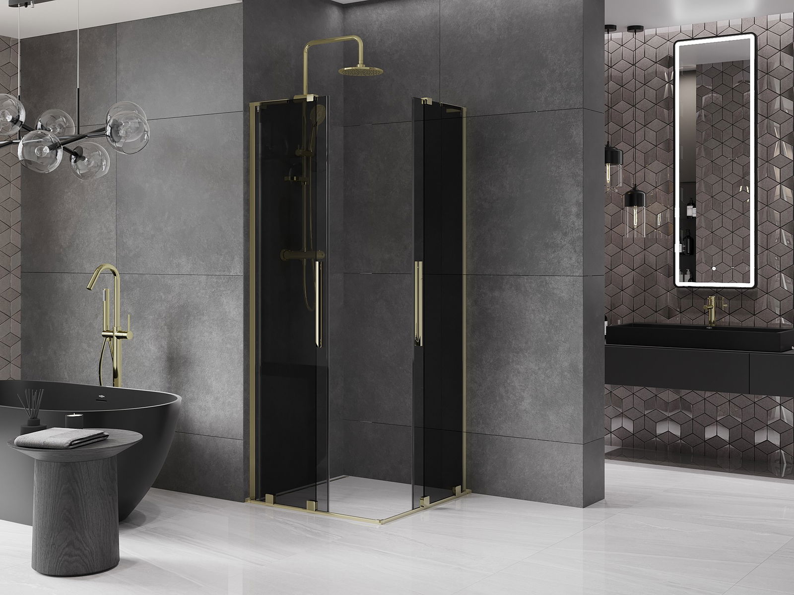Mexen Velar L Duo posuvná sprchová kabina 100 x 100 cm, grafit, zlatá - 871-100-100-02-43-50