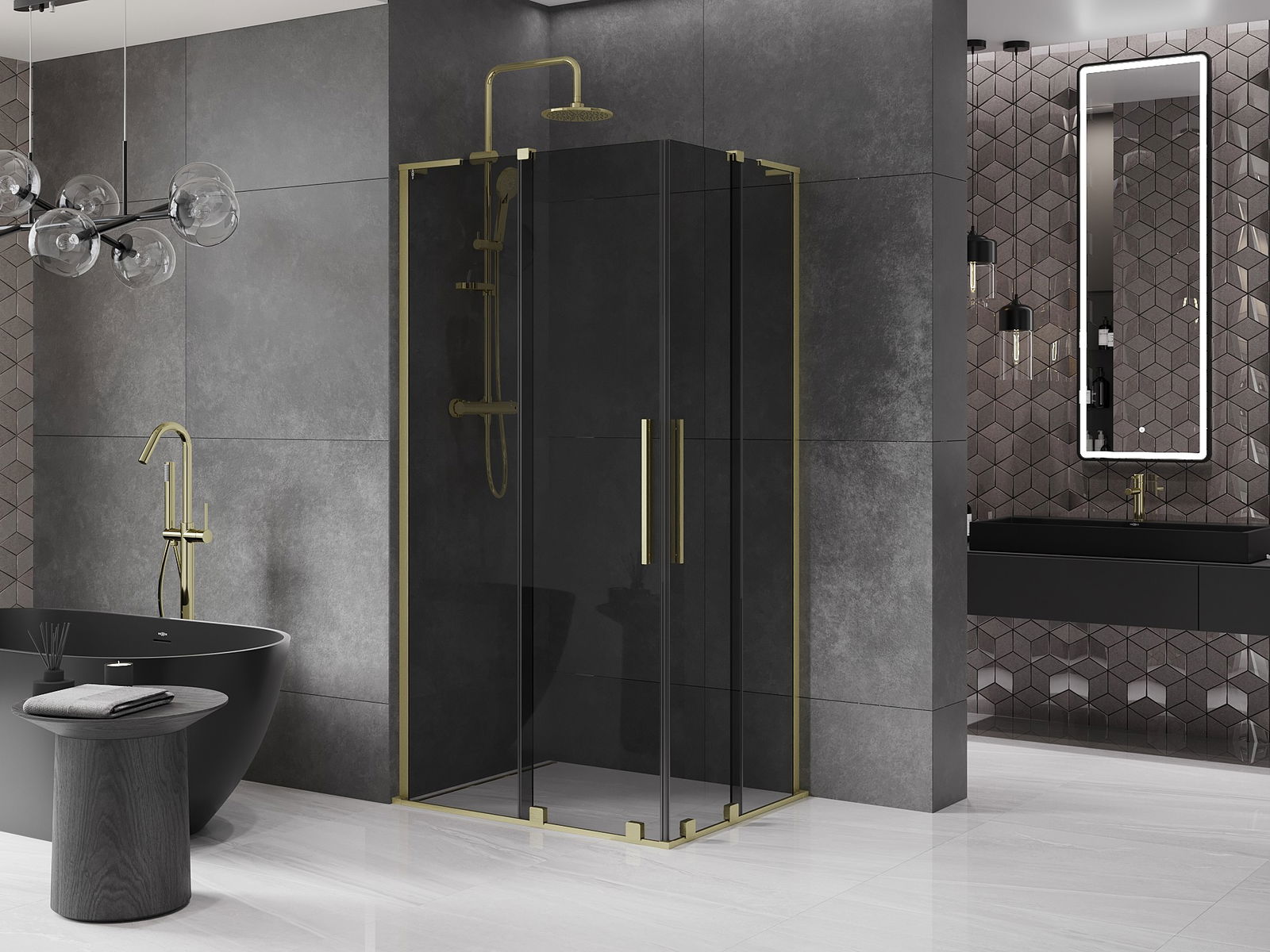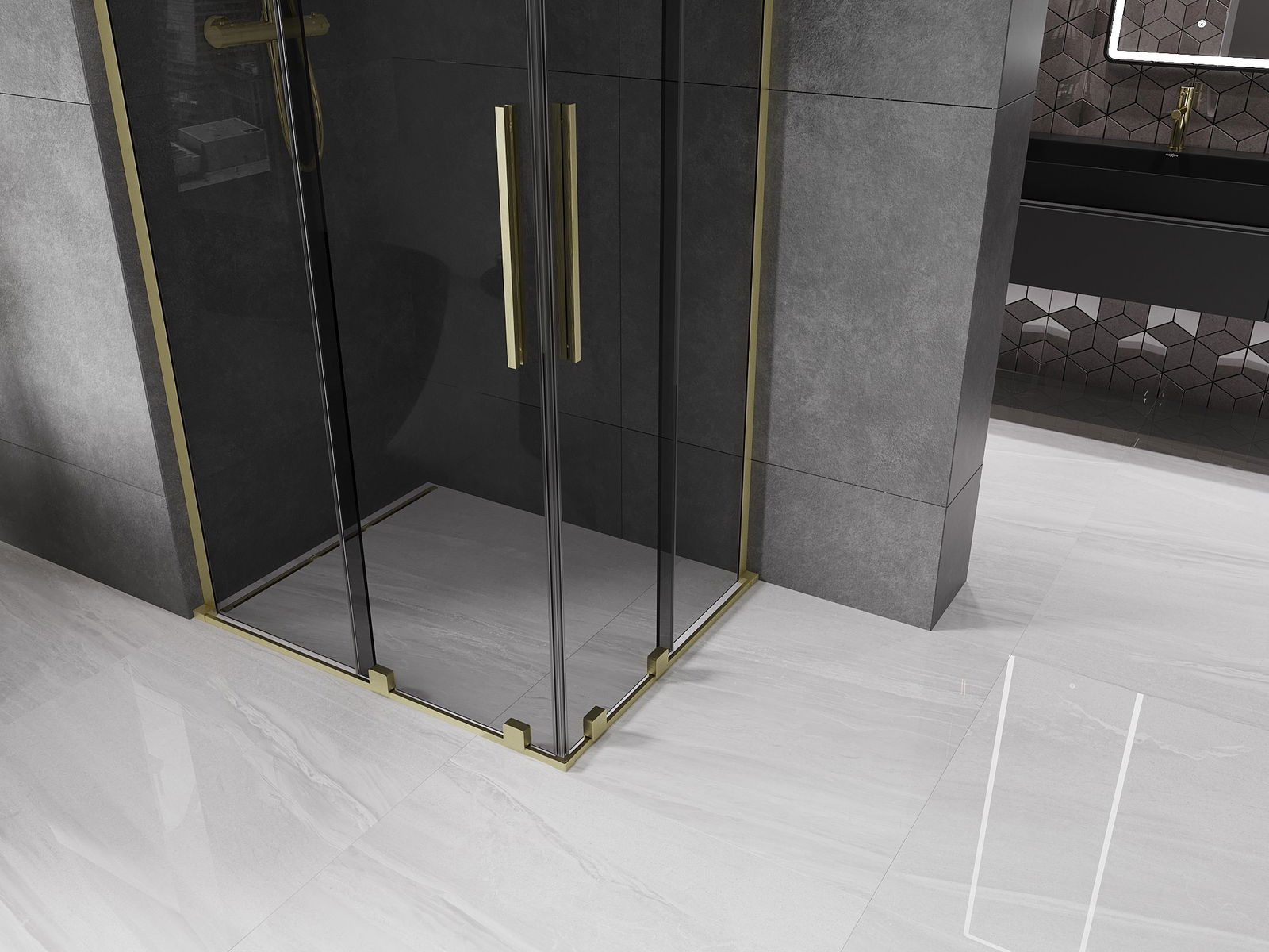 Mexen Velar L Duo sprchová kabina posuvná 90 x 80 cm, grafitová, zlatá kartáčovaná - 871-090-080-02-43-55