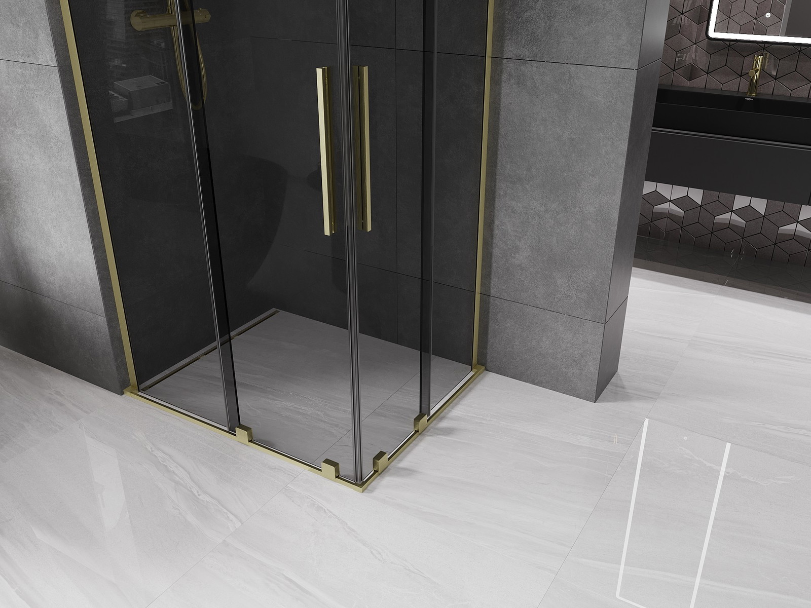 Mexen Velar L Duo sprchový kout je ideální kombinací funkčnosti a elegance. S rozměrem 90x80 cm a výškou 200 cm se hodí do většiny koupelen. Tvrzené sklo o tloušťce 8 mm v grafitové barvě je nejen stylové, ale také odolné. Zlatá kartáčovaná úprava dodává luxusní charakter. Posuvné dveře poskytují pohodlí při použití. Další výhody zahrnují vrstvu usnadňující čištění, hliníkový profil a stabilizátor z nerezové oceli. Možnost montáže jak na sprchovou vaničku, tak i na dlaždice poskytuje flexibilitu a nejvyšší kvalita koleček a těsnění zajišťuje trvanlivost.