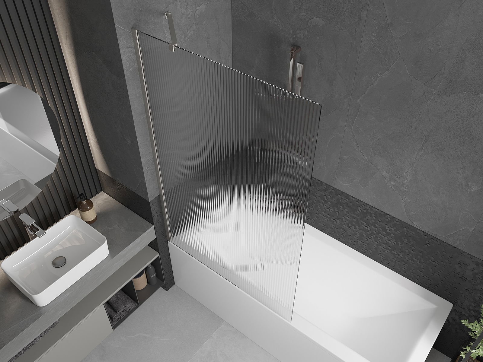 Mexen Next vanová zástěna 1-křídlová 100 x 150 cm, proužky, kartáčovaný nikl - 895-100-000-00-09-97