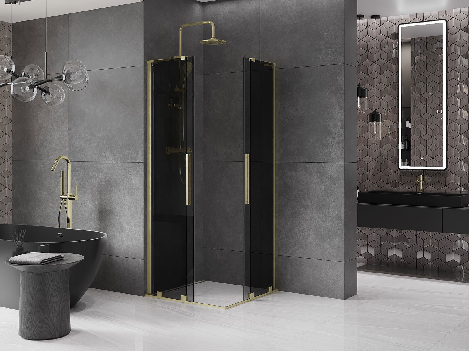 Mexen Velar L Duo sprchová kabina posuvná 100 x 100 cm, grafitová, zlatá kartáčovaná - 871-100-100-02-43-55