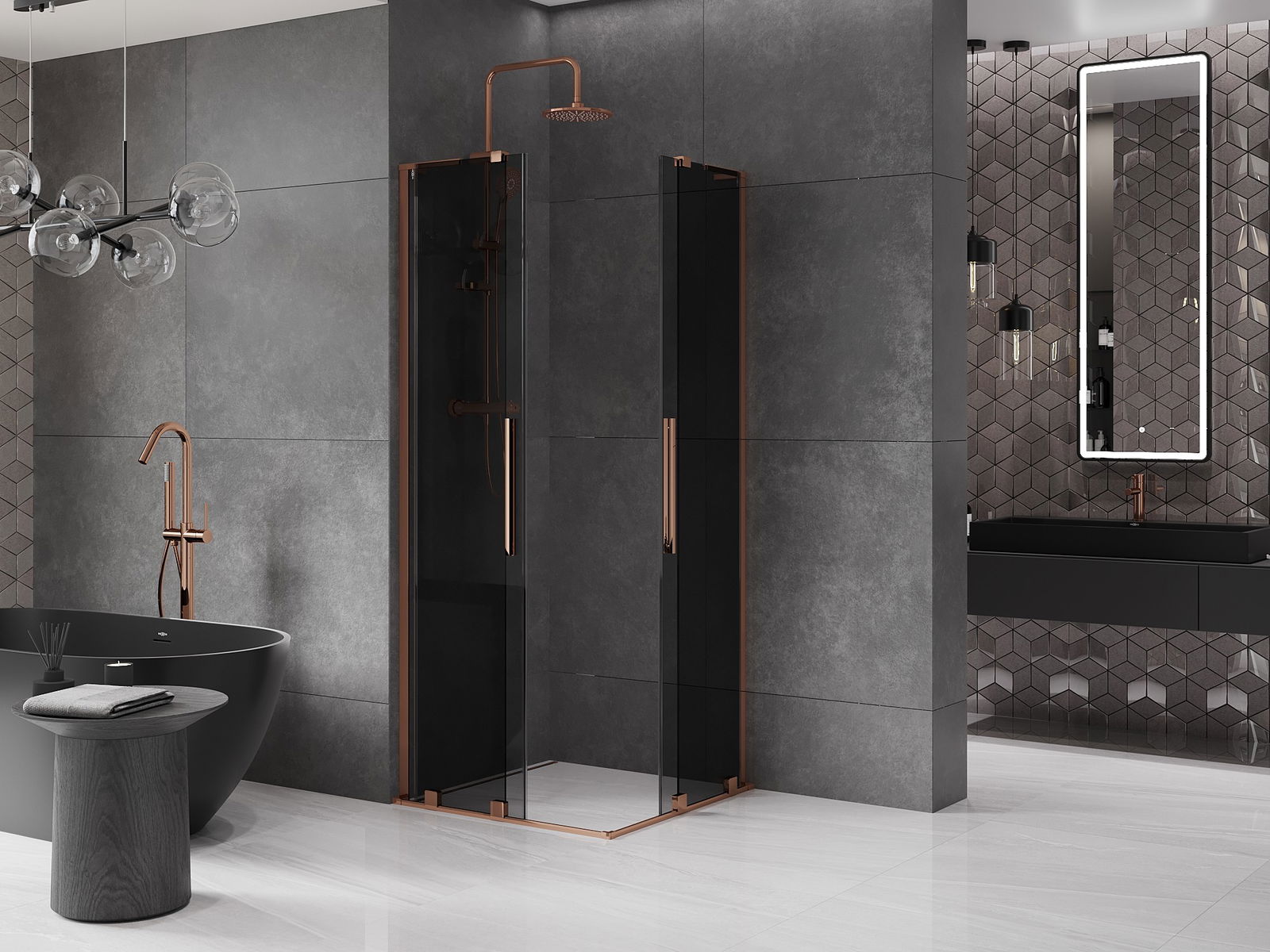 Mexen Velar L Duo posuvná sprchová kabina 90 x 90 cm, grafitová, růžové zlato - 871-090-090-02-43-60