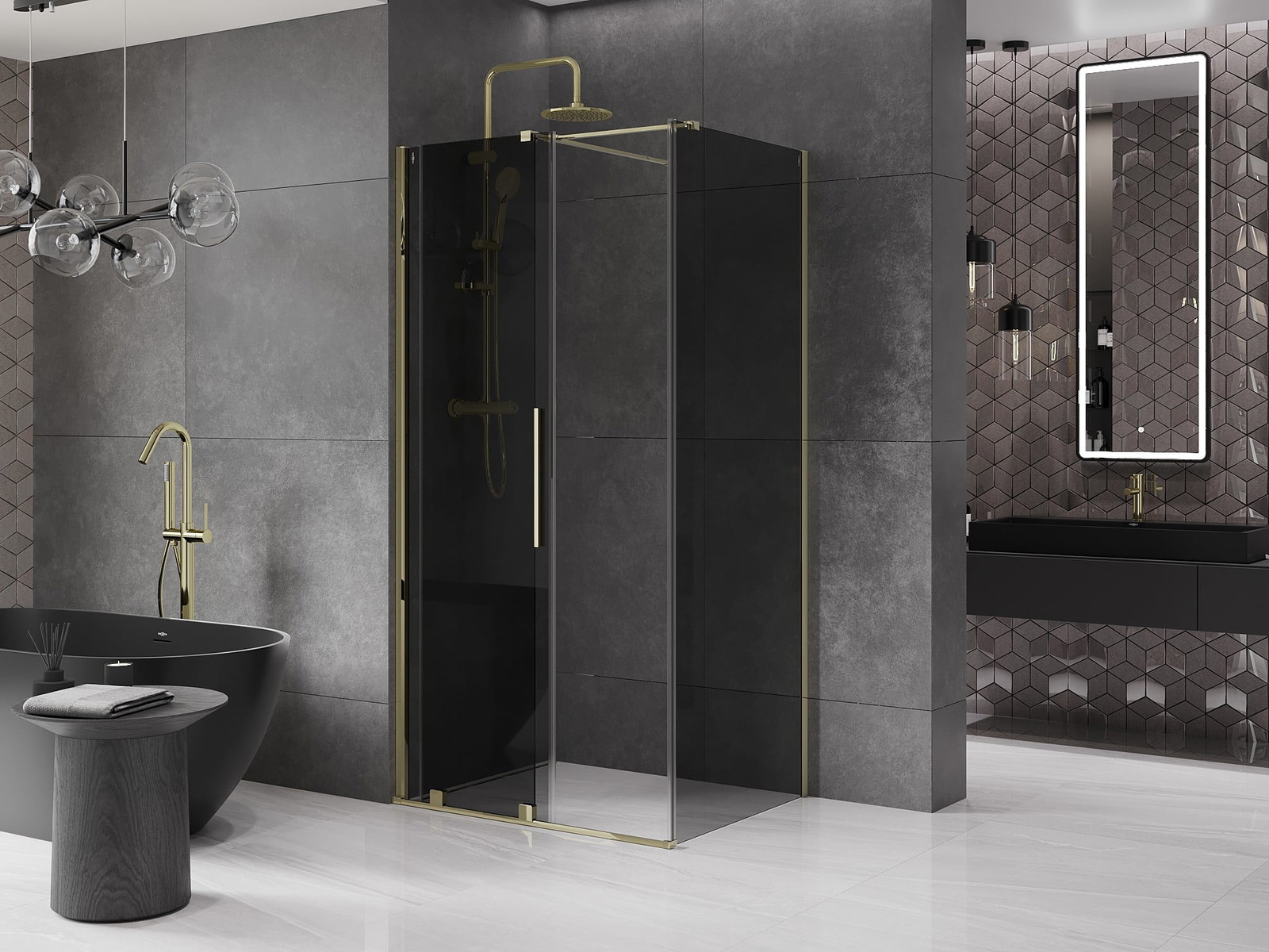 Mexen Velar posuvná sprchová kabina 90 x 85 cm, grafitová, zlatá - 871-090-085-41-50