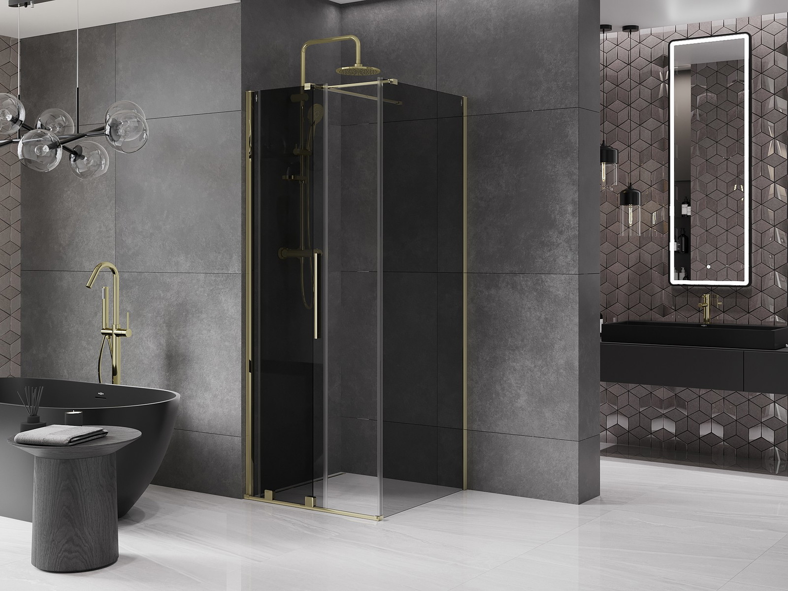 Mexen Velar posuvná sprchová kabina 90 x 90 cm, grafit, zlatá - 871-090-090-41-50
