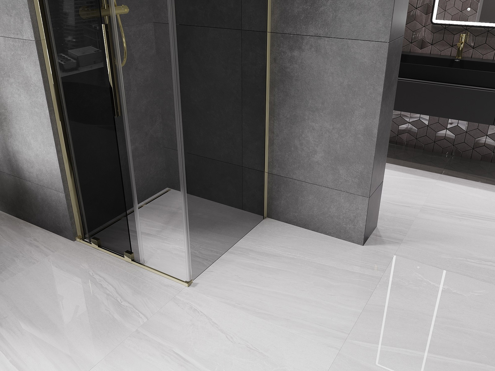 Mexen Velar je elegantní posuvná sprchová kabina o rozměrech 90x90 cm, která se dokonale hodí do každého interiéru. Díky univerzální montáži a možnosti montáže na vaničku nebo dlaždice poskytuje flexibilitu instalace. Povrchová úprava ve zlaté barvě a tvrzené sklo o tloušťce 8 mm v grafitové barvě přidává na eleganci. Obsahuje povlak usnadňující čištění, kompenzaci nerovností stěny a nejvyšší kvalitu rolí. Hliníkový profil a ocelové madlo zdůrazňují solidnost konstrukce.