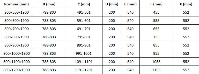Velikost: 80x90 cm (dveře 80 cm, stěna 90 cm)