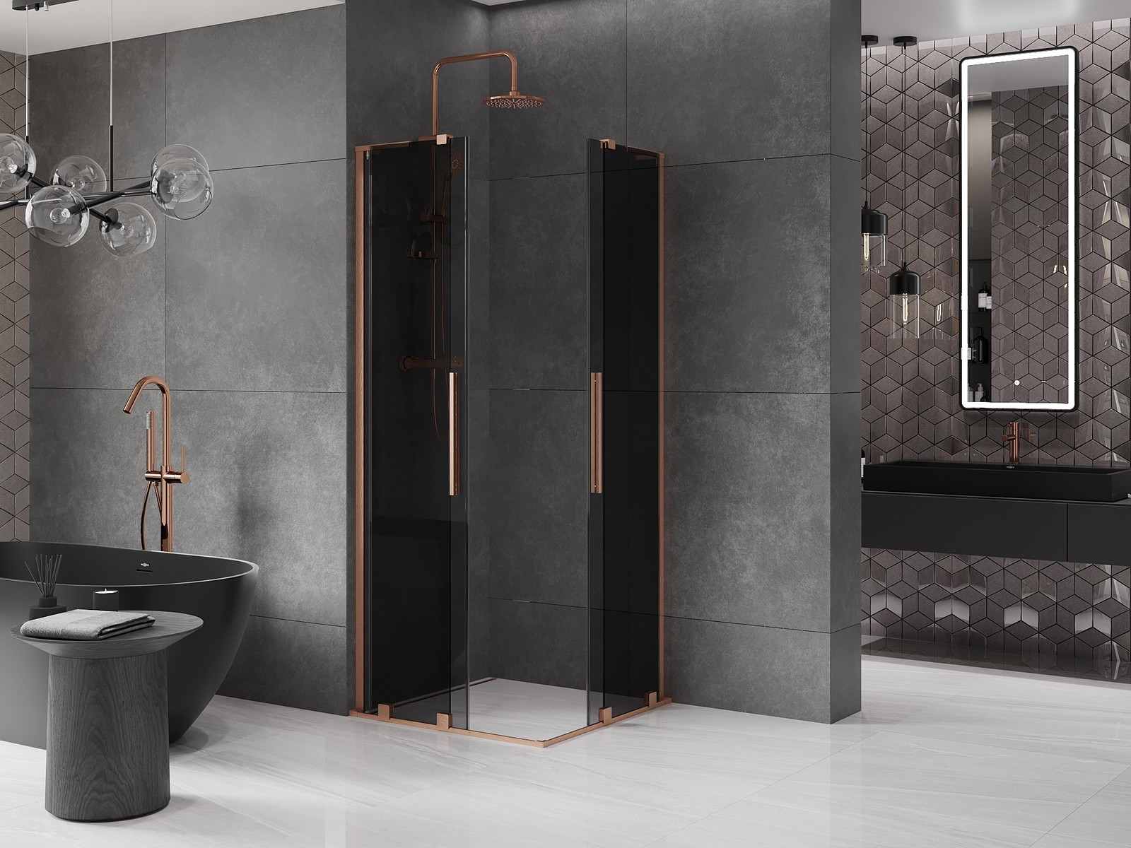 Mexen Velar L Duo sprchová kabina 80 x 80 cm, grafitová, kartáčovaná měď - 871-080-080-02-43-65