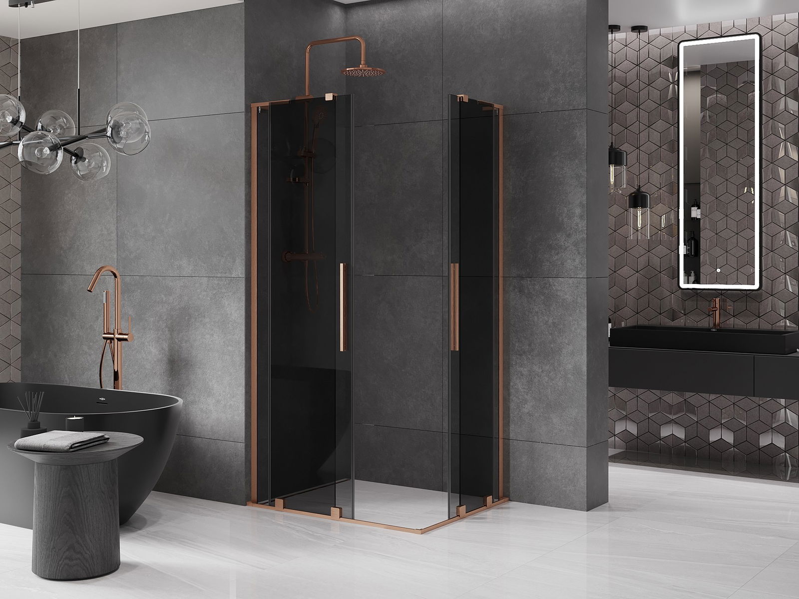 Mexen Velar L Duo sprchová kabina posuvná 100 x 90 cm, grafitová, kartáčovaná měď - 871-100-090-02-43-65