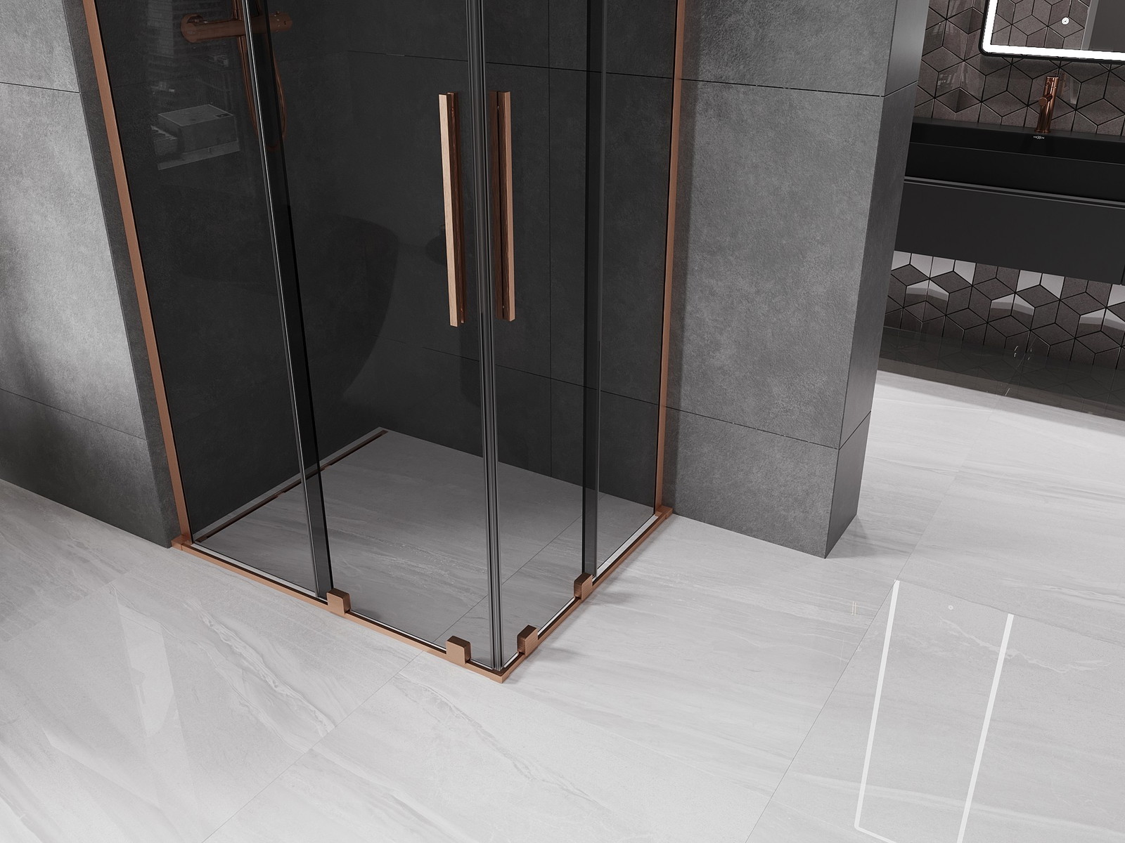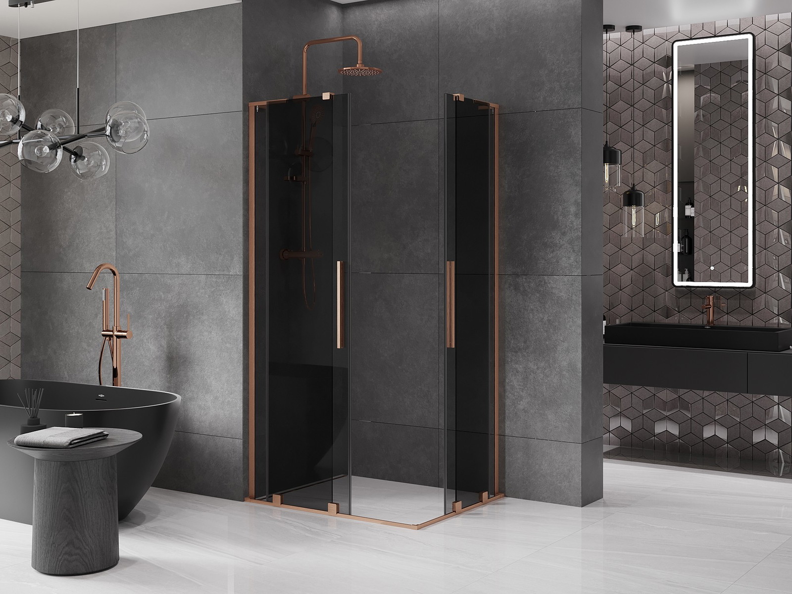 Mexen Velar L Duo sprchový kout se zasouvacími dveřmi 100 x 90 cm, grafit, kartáčovaná měď - 871-100-090-02-43-65