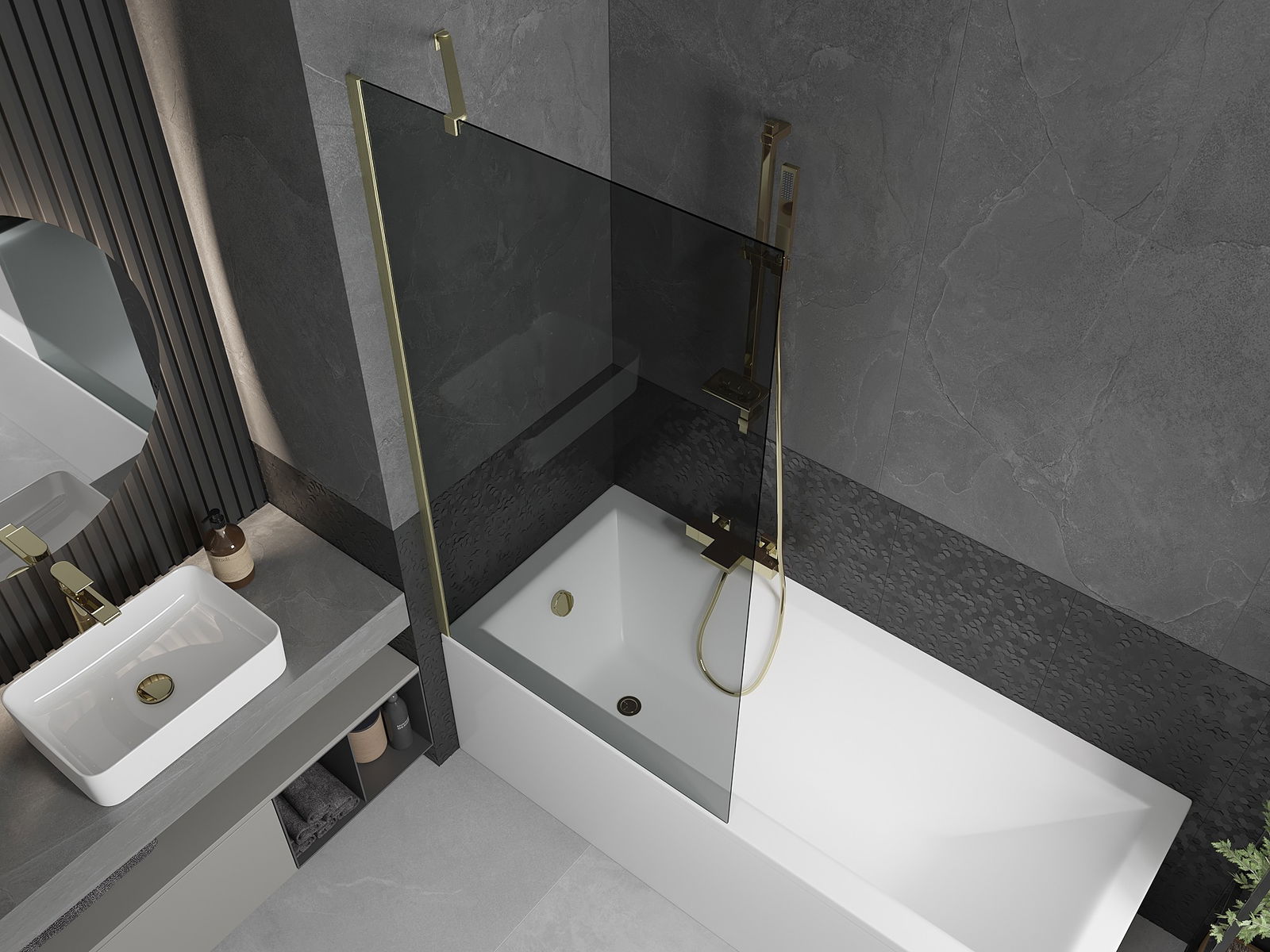 Mexen Next vanová zástěna, 1-křídlová, 90 x 150 cm, grafitová, zlatý kartáčovaný - 895-090-000-00-40-55