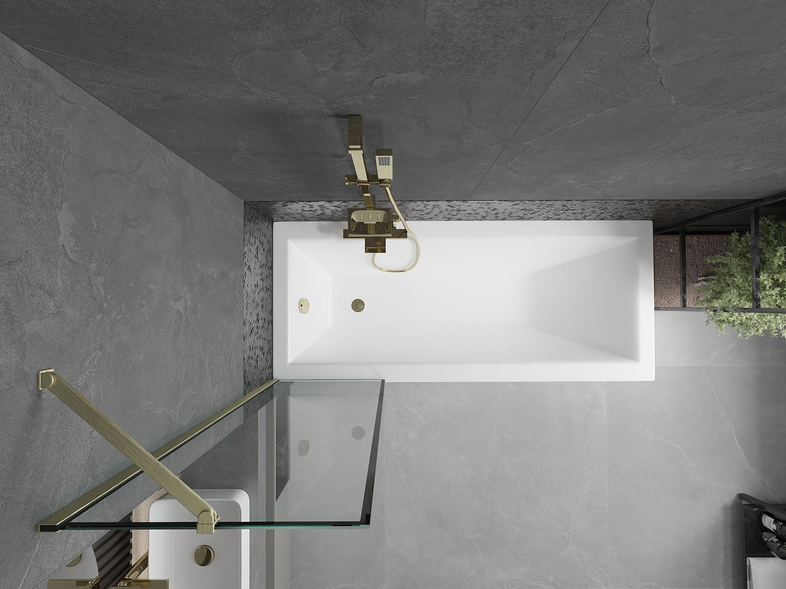 • Mexen Next vanová zástěna 1-křídlová 50 x 150 cm, černý rám, zlatý kartáčovaný - 895-050-000-00-70-55