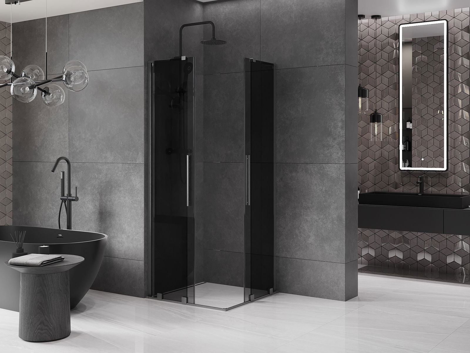 Mexen Velar L Duo sprchový kout posuvný 90 x 90 cm, grafit, gun gray kartáčovaný - 871-090-090-02-43-66