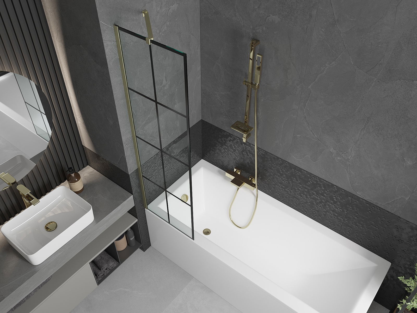 Mexen Next vanová zástěna 1dílná 50 x 150 cm, černá mřížka, zlatá kartáčovaná - 895-050-000-00-77-55