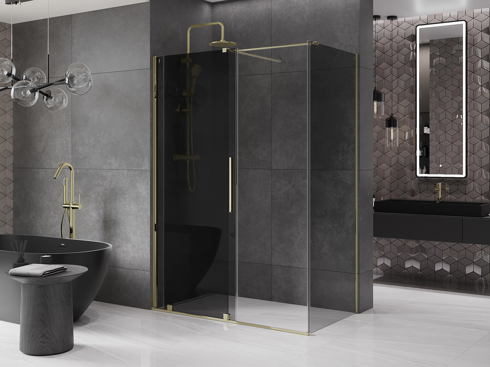 Mexen Velar posuvná sprchová kabina 130 x 70 cm, grafitová, zlatá - 871-130-070-41-50